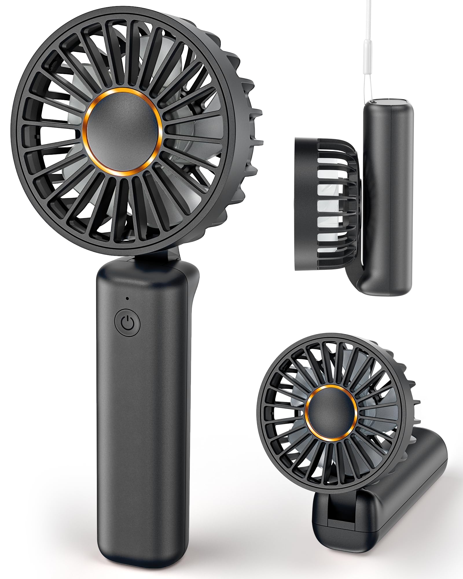 Hssio Portable Handheld Fan, Mini Desk Fan Foldable 2000mAh, 180° Ratotion, 3 Speeds, Ultra Quite, Up to 8H Long Use Time, Small Personal Cooling Fans Makeup Lash Fan for Women Girls
