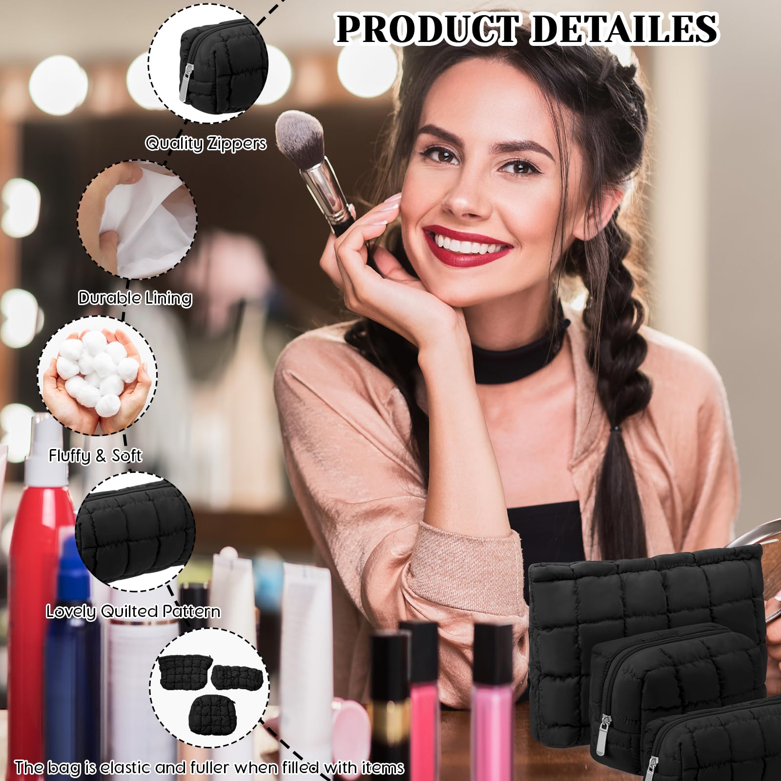 - Fashionable and Thoughtful Gift: delight your loved ones with this quilted black makeup bag; Ideal for birthdays, Valentine's Day, graduation ceremonies, and Christmas, this cute women's makeup bag set is a good way to express your thoughtful care