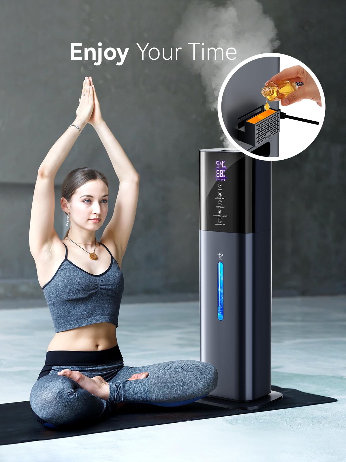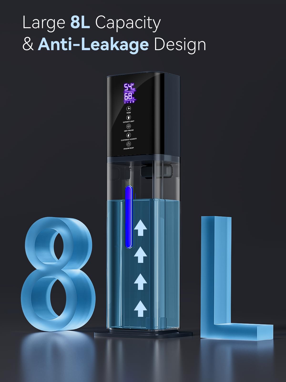 - 【8L Large Capacity & Powerful Mist!】If you are bothered by problems associated with dry air—dry sinuses, nosebleeds, cracked and sore lips, —the air in your home is likely under-humidified.Our high-capacity humidifier is here to provide you with the ultimate solution. With a large 8L (2.11gal) water tank, it can continuously produce a powerful mist output of 300ml/h for up to 48 hours on a single refill. Its sleek, slim design allow for easy placement in any room without taking up too much space