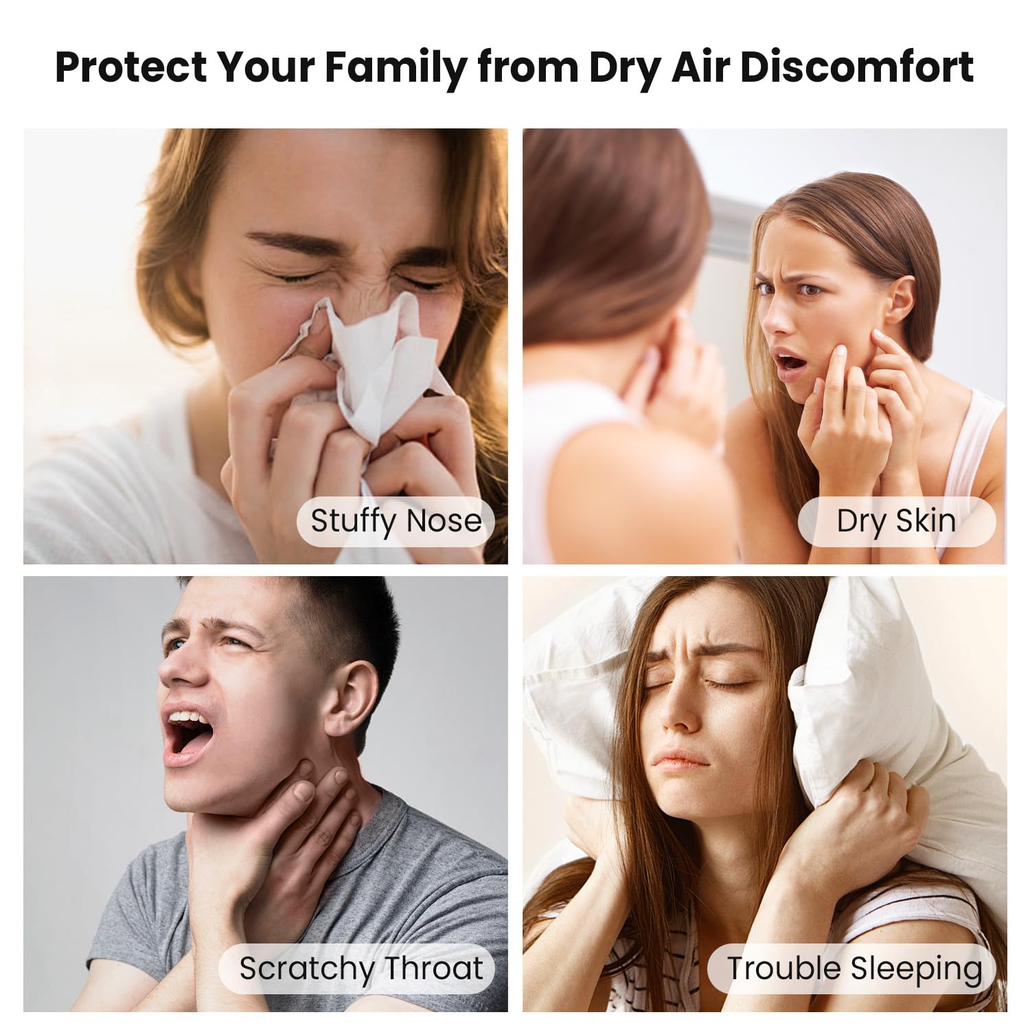 - 𝑺𝒍𝒆𝒆𝒑 𝑴𝒐𝒅𝒆 𝒇𝒐𝒓 𝑩𝒆𝒅𝒓𝒐𝒐𝒎: This humidifier runs at an ultra-quiet 35dB—whisper-soft, never disturbing your rest. It also boasts 7-color lights for a gentle night glow and a built-in aroma pad to infuse the air with soothing scents, keeping you comfortable as you sleep. All device lights turn off in sleep mode