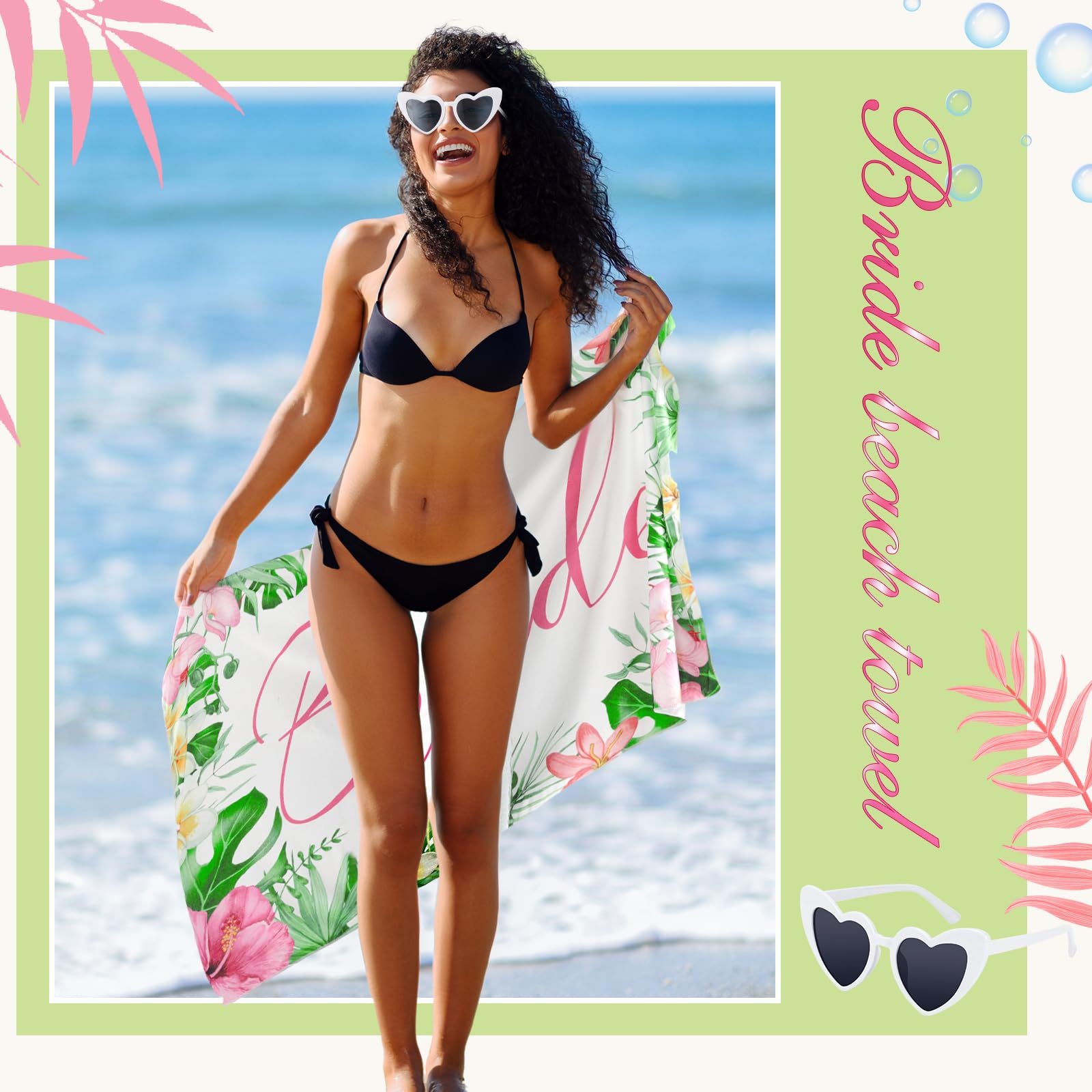 Hunnmingre 4 Pcs Bride Beach Towel Set Bridal Gift Bachelorette Beach Towel Honeymoon Bride Towel Bride to Be Bridesmaid Favors Engagement Party Supplies for Wedding Bachelorette Party, 63"x33"(Aloha)