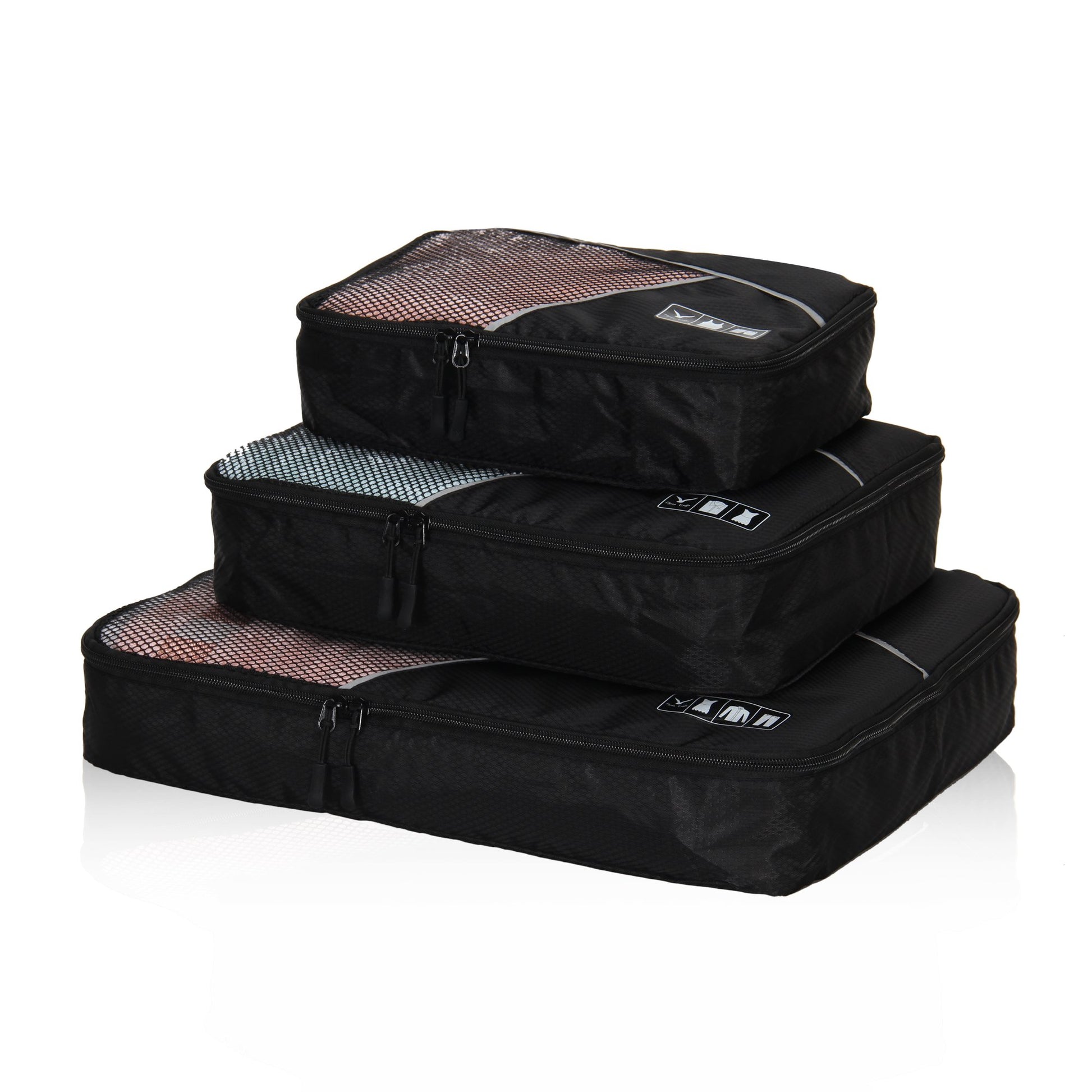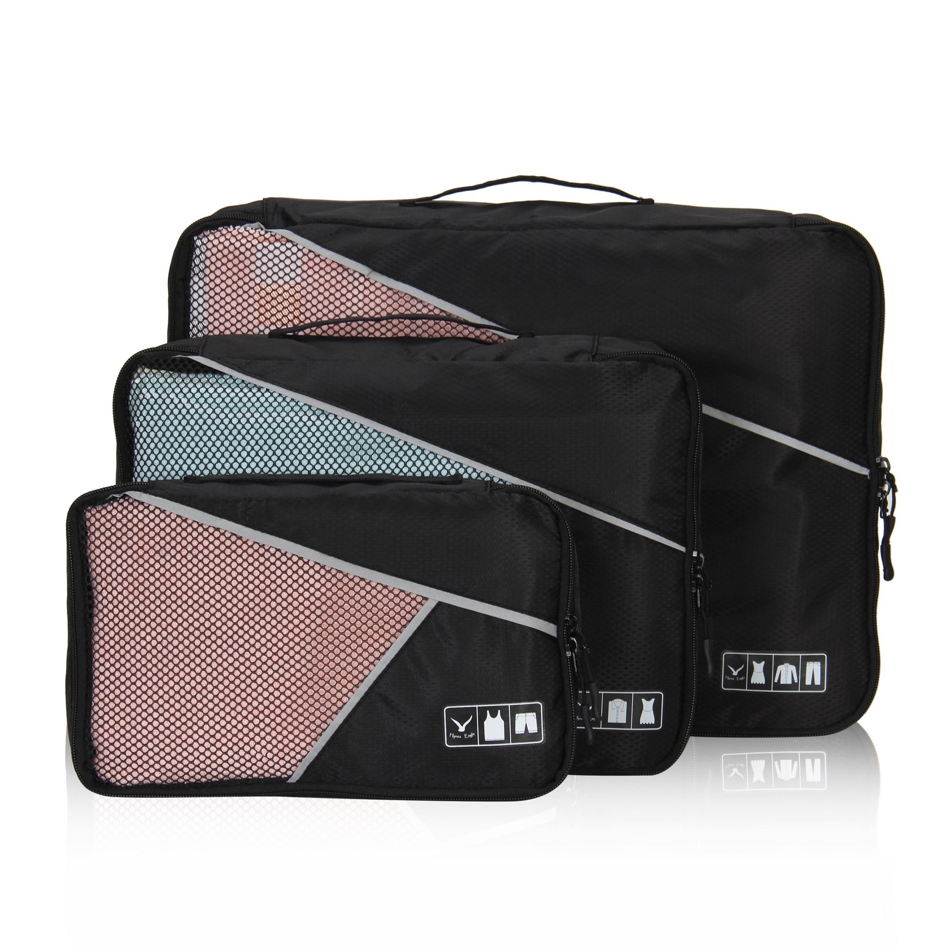 Hynes Eagle 3 Pieces Packing Cubes Set Travel Luggage Organizer Bag Black