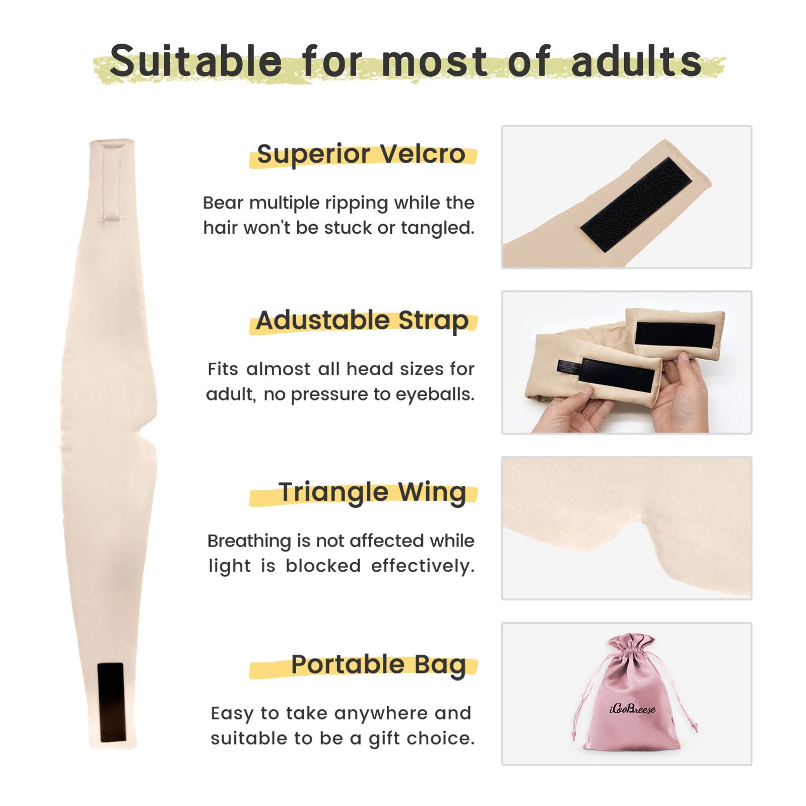 iCooBreeze 100% Handmade Bamboo Sleeping Eye Mask for Women for Men,Night Masks,Organic Sleep Mask,Blockout Eye Mask for Sleeping,Large Size Adjustable (1 PC, Apricot)