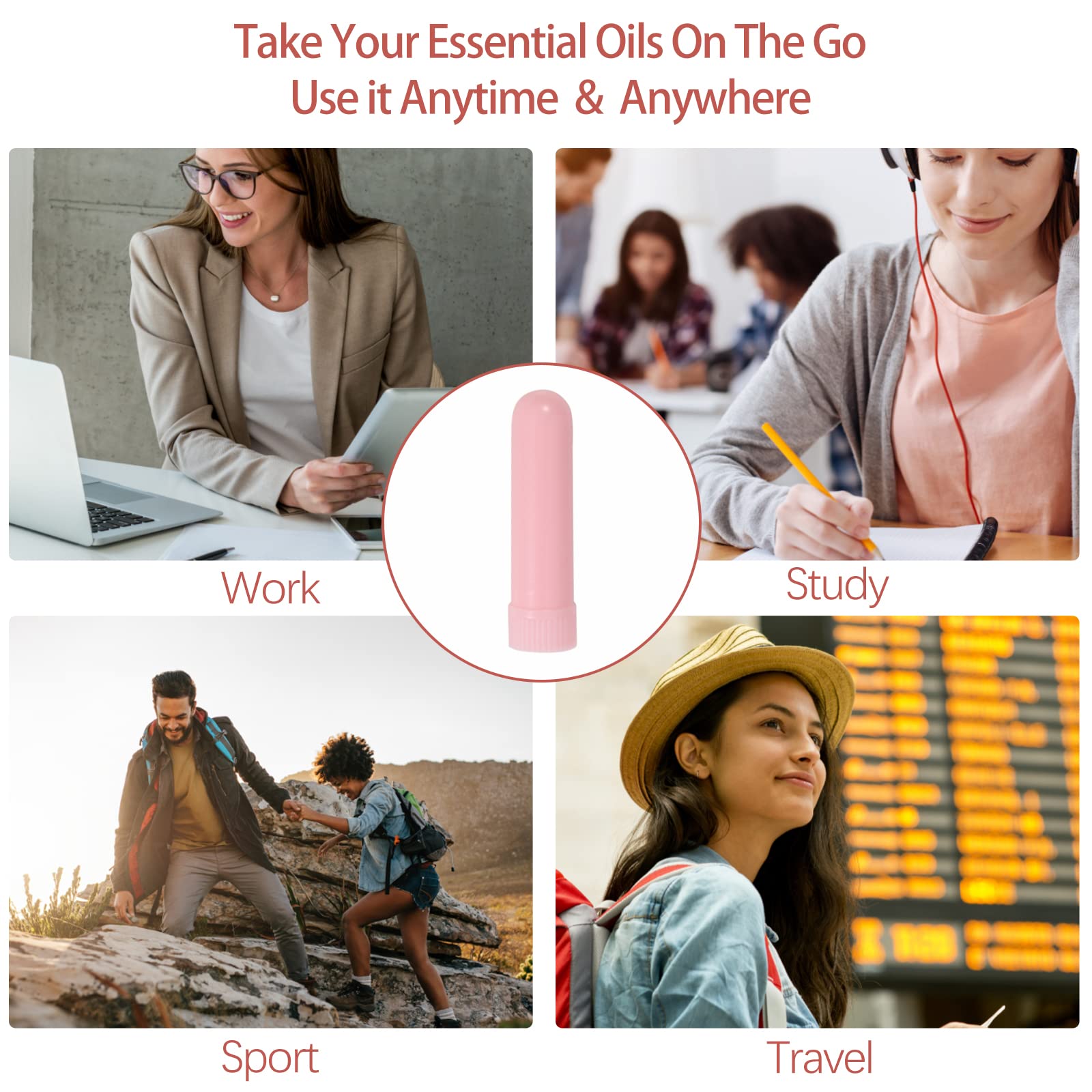 - 【Take Your Essential Oils on The Go】Height 2.6“inch (6.5cm)/ diameter 0.7 inch (1.8cm) , as small as a lipstick. Just put the essential oil nasal inhaler in your pocket, purse, travel bag, so you can carry it anywhere, like office, home, school, traveling, spa, gym, etc.