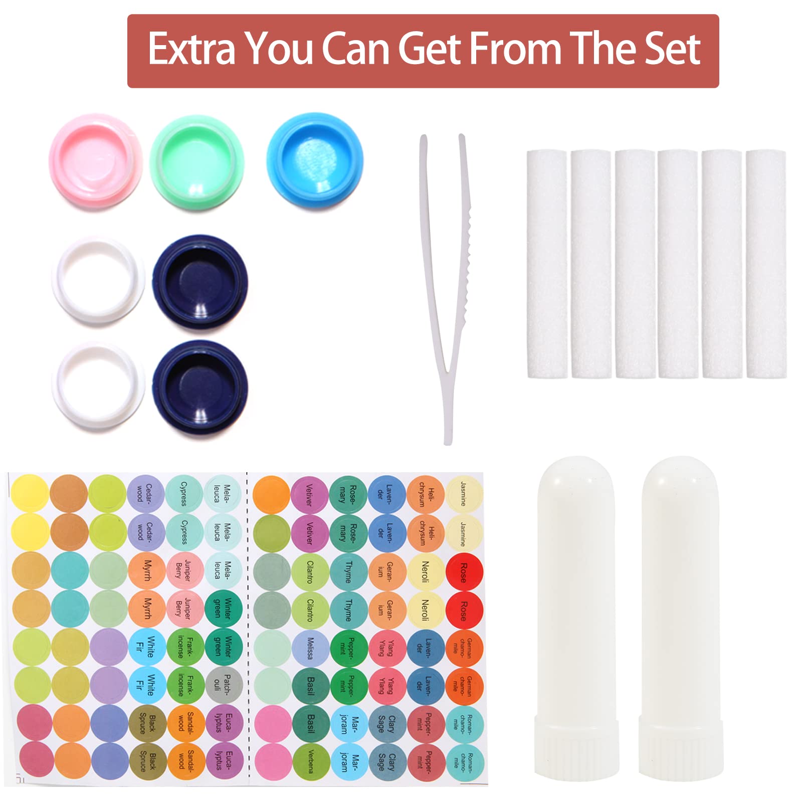 - 【Useful Extra Gifts】-- 2 extra nasal inhalers to thank your support! And our 30pcs wicks with strong absorbency that can absorb essential oil easily.64pcs round stickers with printed logo to distinguish your essential oil,32pcs blank writable labels.They are all self adhesive and easy to peel.5pcs extra bottom caps as back up after you change wicks.1pcs plastic tweezers could help the wick clean when you take it out and insert it into inhaler. You can get a total of 184 pieces in one set!