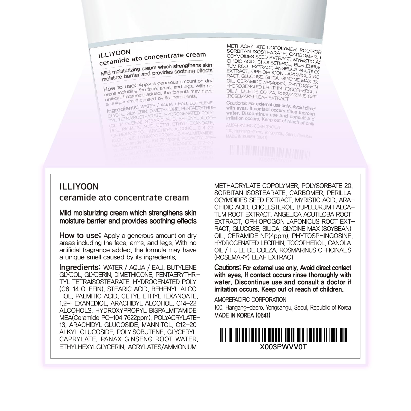 Illiyoon Ceramide Ato Concentrate Cream | Moisturizer for Dry & Sensitive Skin, 100hr Lasting Hydration, For Face & Body, Gentle for Infants, Moisture Barrier Repair, Vegan Certified, 2.53 fl.oz.