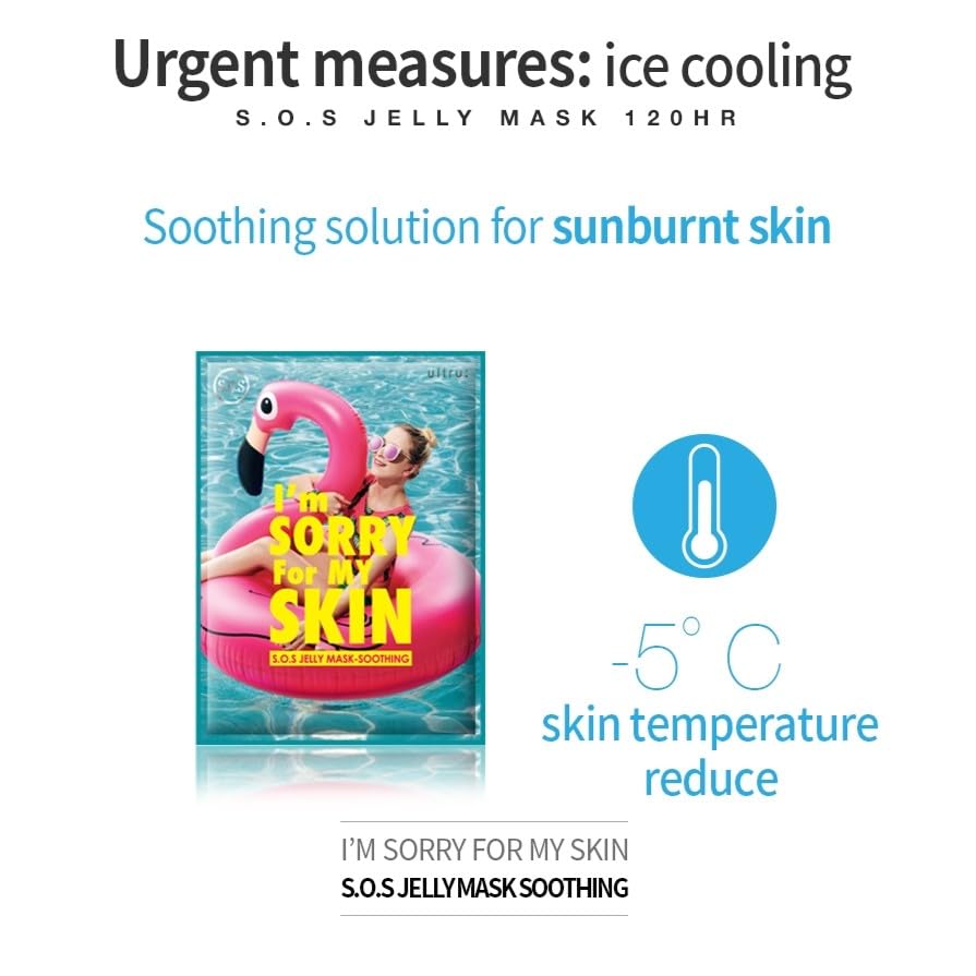 I'M SORRY FOR MY SKIN Jelly Face Mask Korean Skin Care, Hydrating Face Masks Skincare Set, Self Care Items for Glow Beauty, Teacher Appreciation Gifts for Women, Pack of 10 (Cooling SOS Soothing Mask)