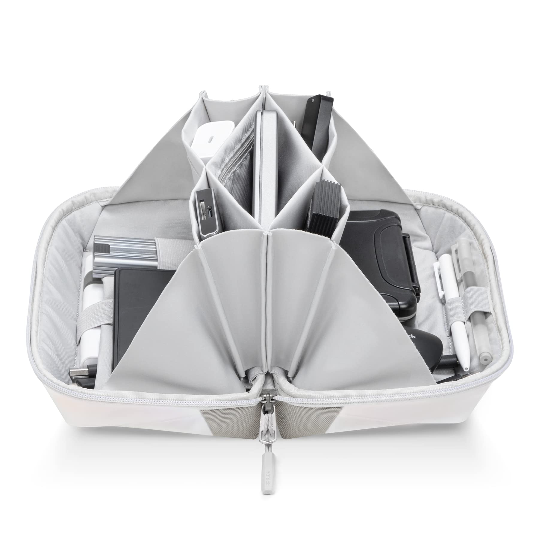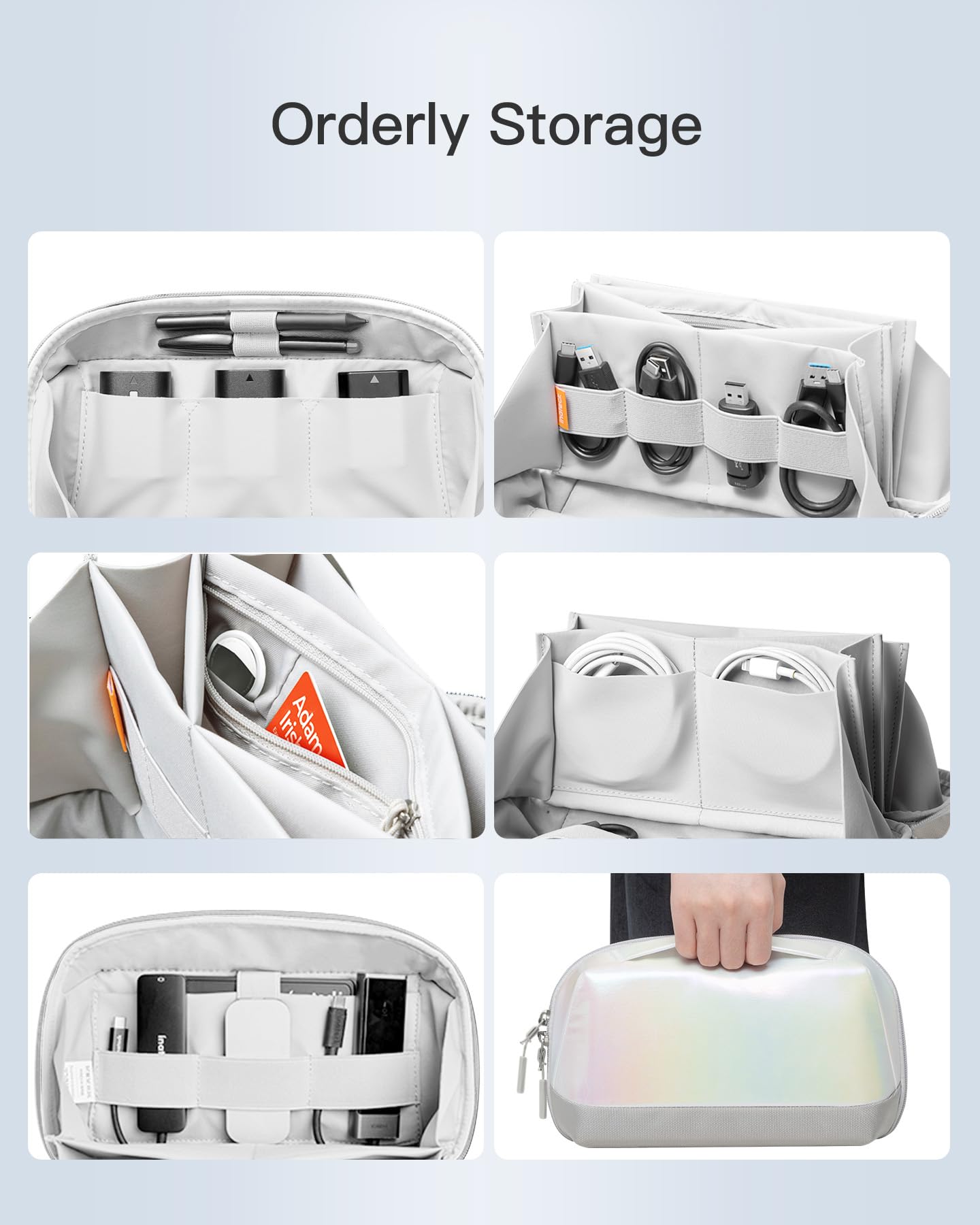 - Orderly Storage: There are 12 different compartments or pockets to store your charger, hard drive, power bank, mouse, earphones, USB cables, notebooks, game cards, pens, etc. Perfect for anyone looking for travel organizer, storage organizer, travel bag electronics accessories, travel wire organizer