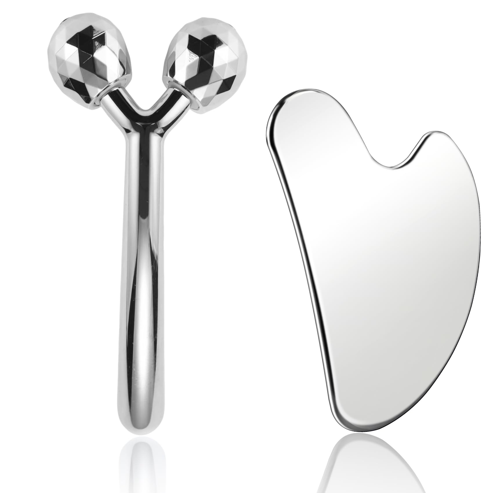 InfiniteRelax Face Massager, Metal Roller Gua Sha Facial Tools for Face Neck Eye Body Skin Care, Facial Roller Gifts for Her, Women and Girl 2Pcs