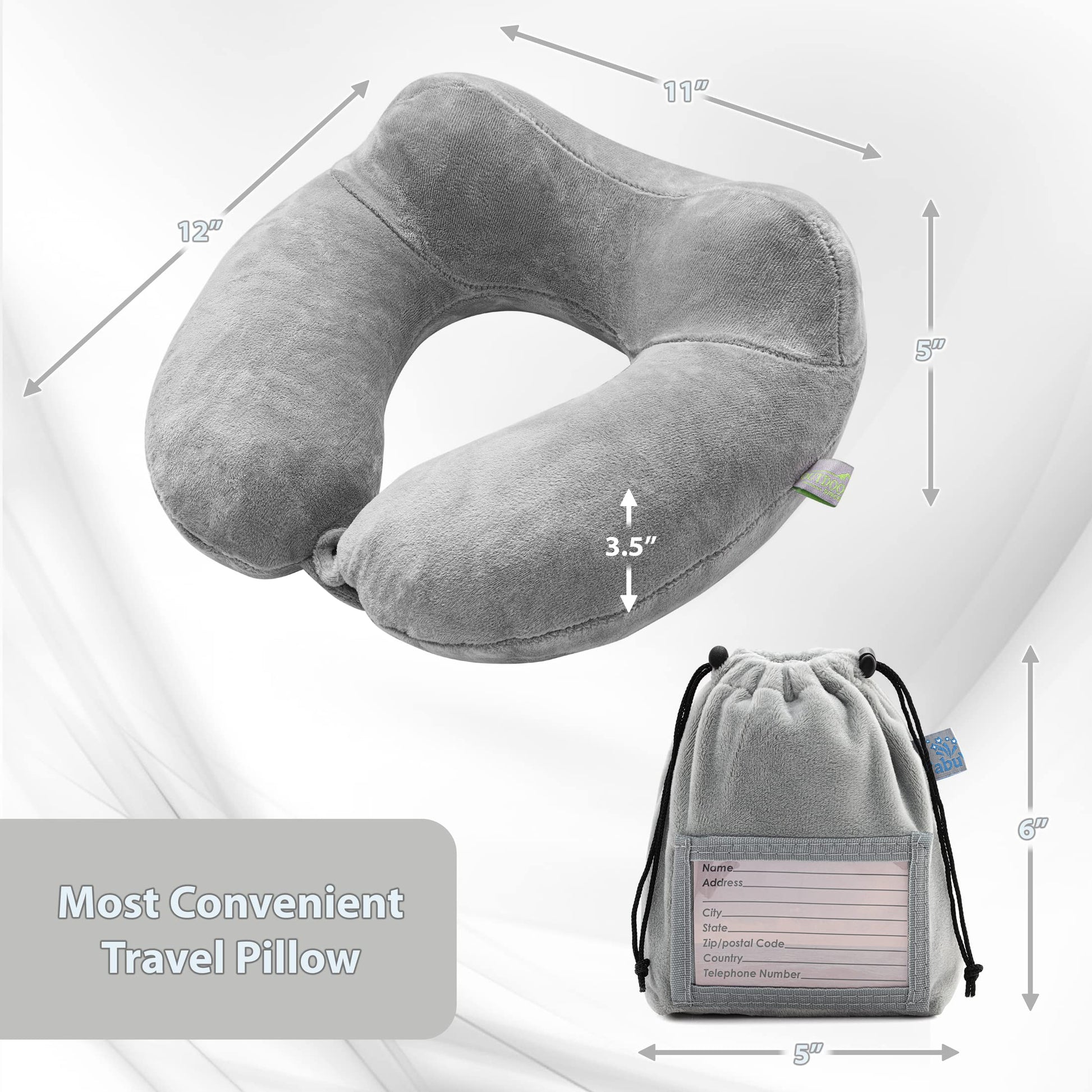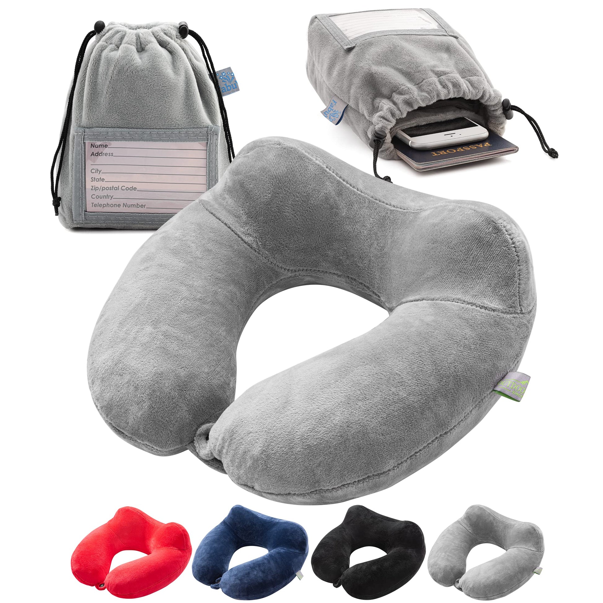 Inflatable Travel Neck Pillow: Extra-Soft, Cushion. For Airplanes, Trains, Cars, Portable Travel Accessory-With Carrying Pouch For cell phone and Passport Etc. (Grey)