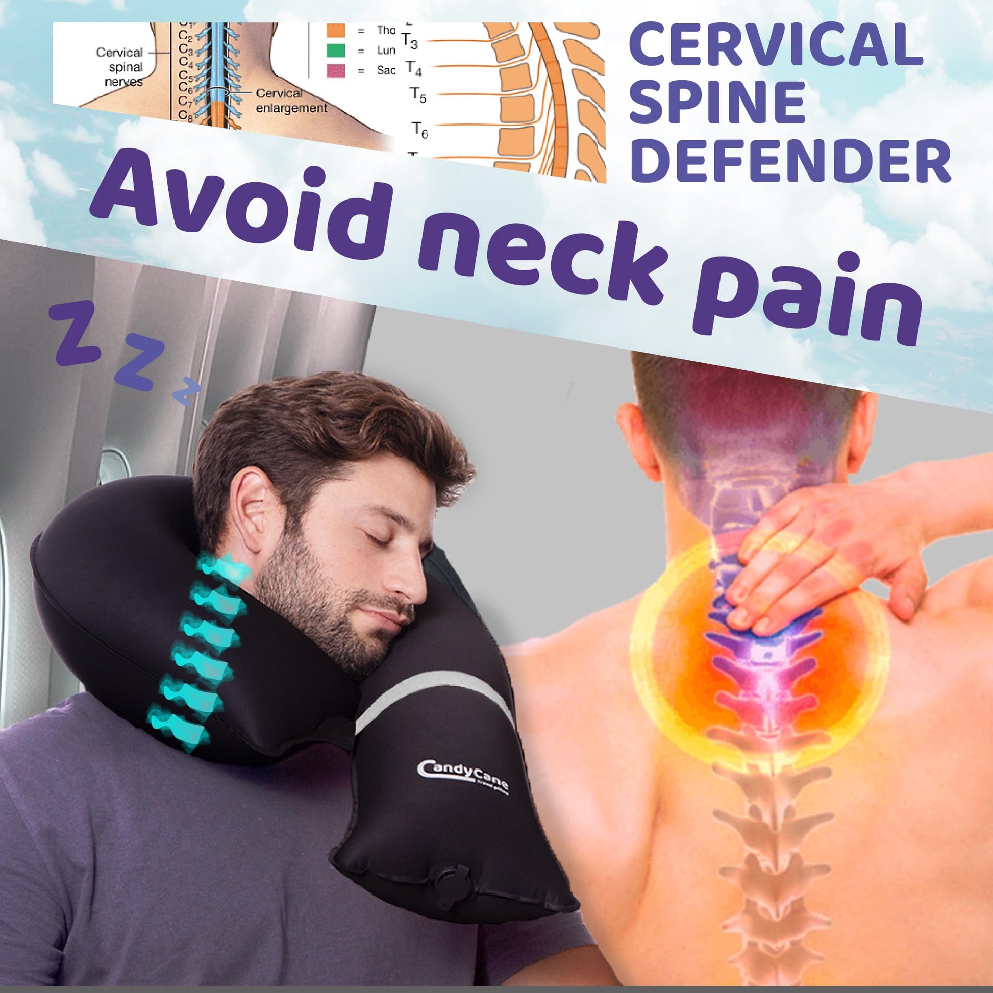 Inflatable Travel Pillow for Airplanes, Cars & Home – Adjustable Neck, Head & Chin Support – 360° J-Shaped Design – Blow Up Travel Pillow for Sleeping on Plane – Compact & Eco-Friendly