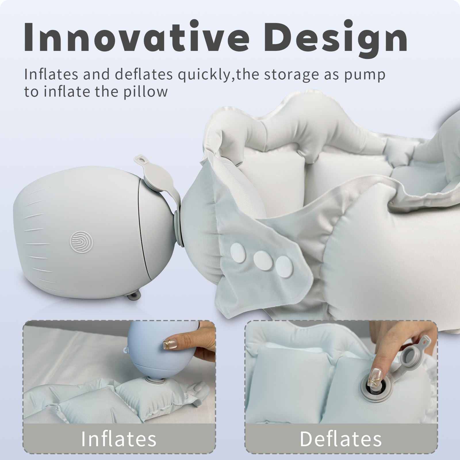 Inflatable Travel Pillow Portable Quickly Inflated Neck Pillows Washable Camping Pillow Headrest Sleep for Airplane Car Buses Trains Home Office Napping Traveling Essentials (Gray)