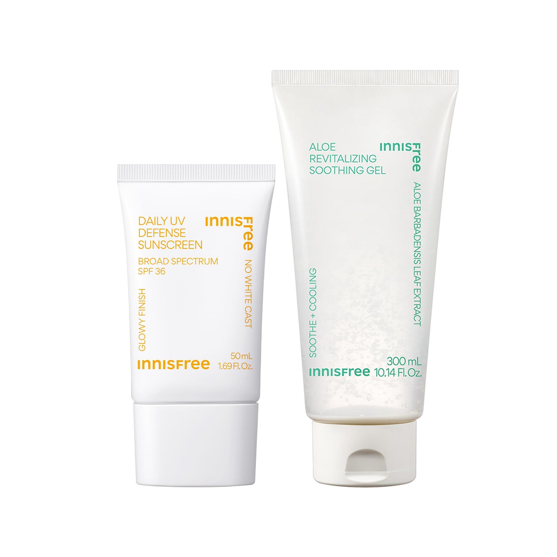 innisfree Daily UV Defense Sunscreen and Aloe Revitalizing Soothing Gel Bundle, Korean SPF and Hydrating Aloe Duo