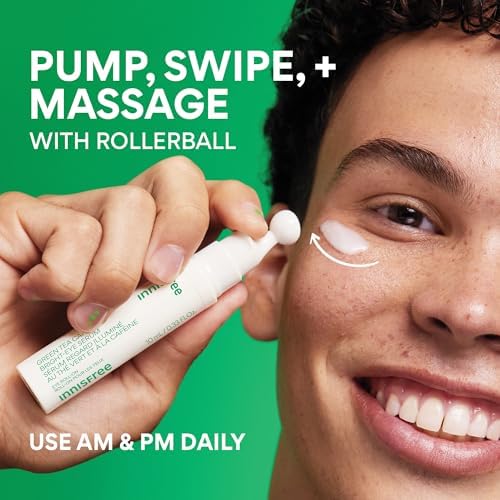 innisfree Green Tea Caffeine Depuffing Eye Serum with Niacinamide, Cooling Korean Eye Roll-On for Hydration and Brightening