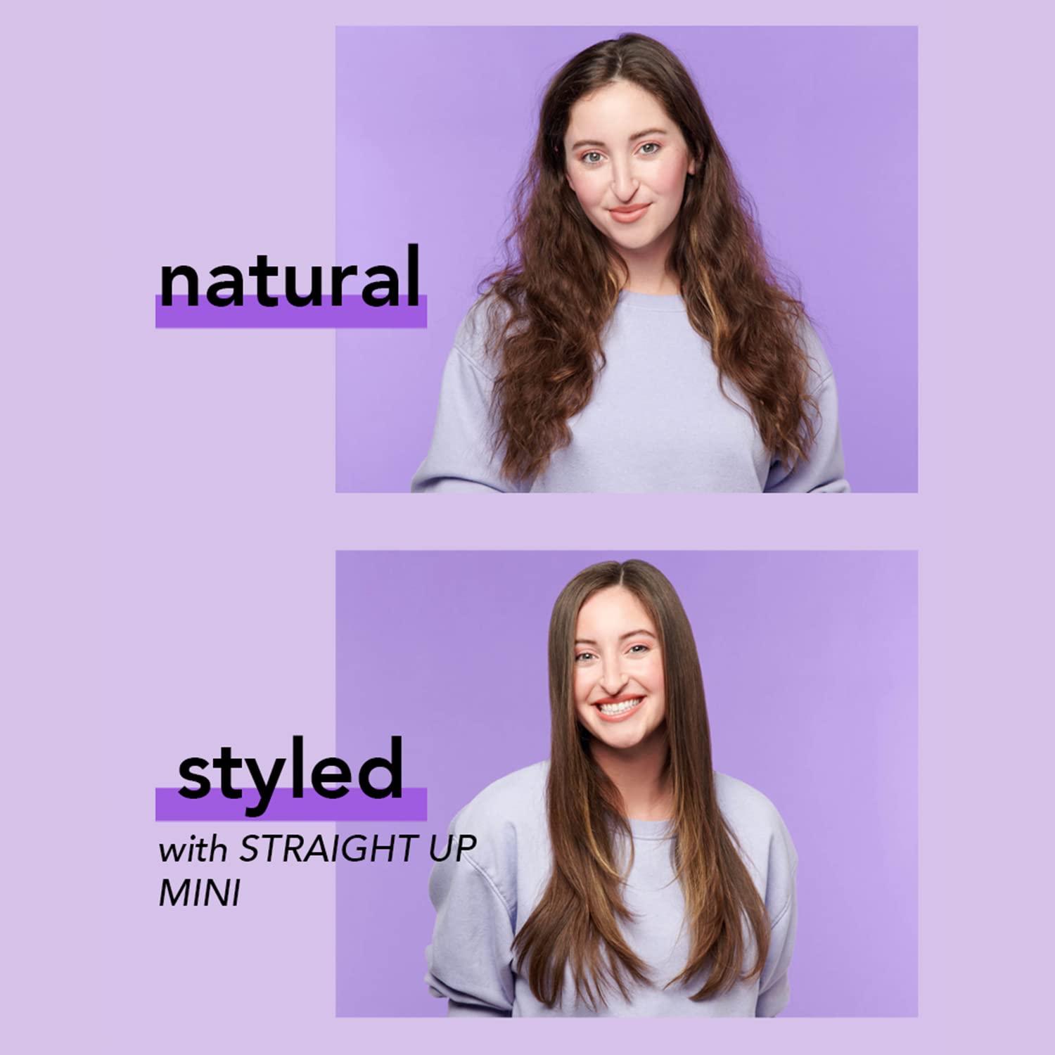 - Half The Size, All The Style - Get smooth, straight hair from anywhere you go. Straight Up Mini is tiny, but powerful - packing 45 powerful ceramic heated plates that deliver instant, even temperature as you style your hair. Includes cool tip ionic bristles for frizz-free styling and automatic shut off.