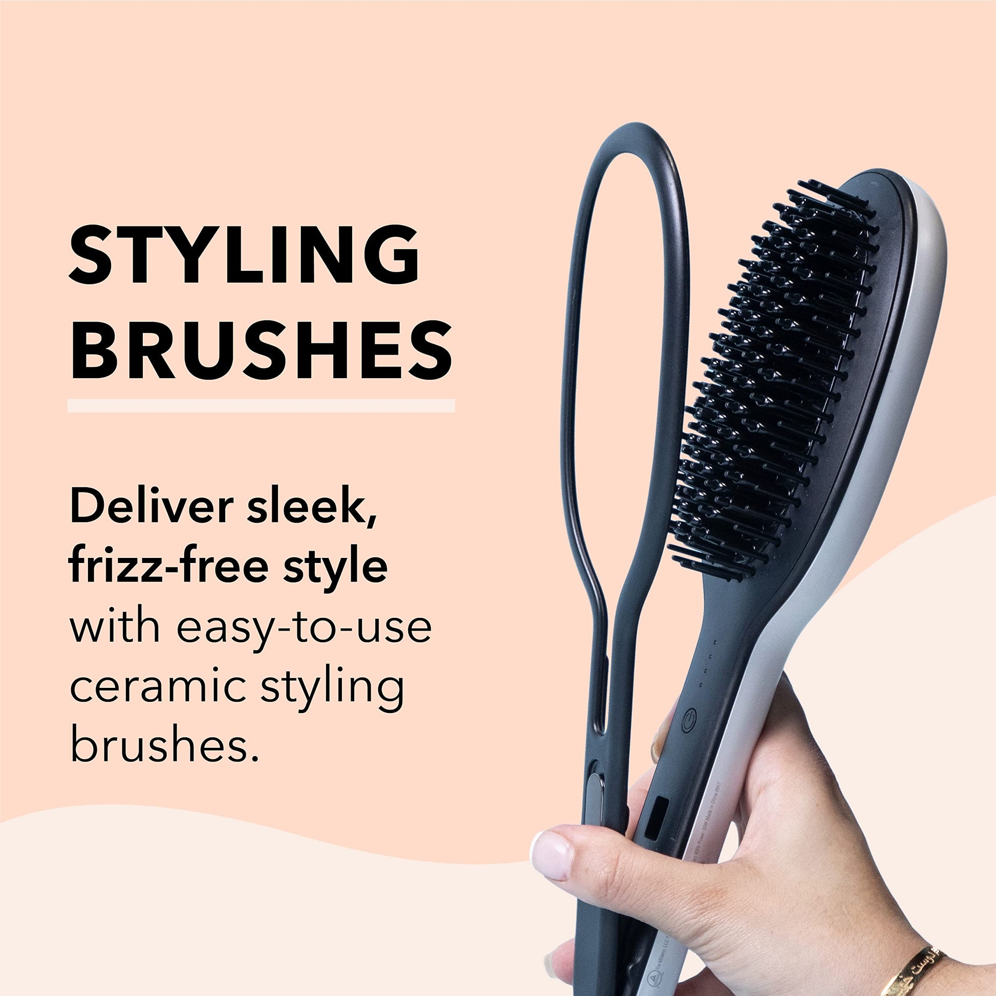 - Fast, Powerful Straightening - Ceramic heated plates surround ionic bristles that simultaneously brush and smooth your hair as they remove frizz. Most heated brushes lose power as your style, but not Straight Up Mini. This brush quickly heats up to 400°F with digital temperature display, and the heat gets evenly distributed across hair for an easy, consistent finish.