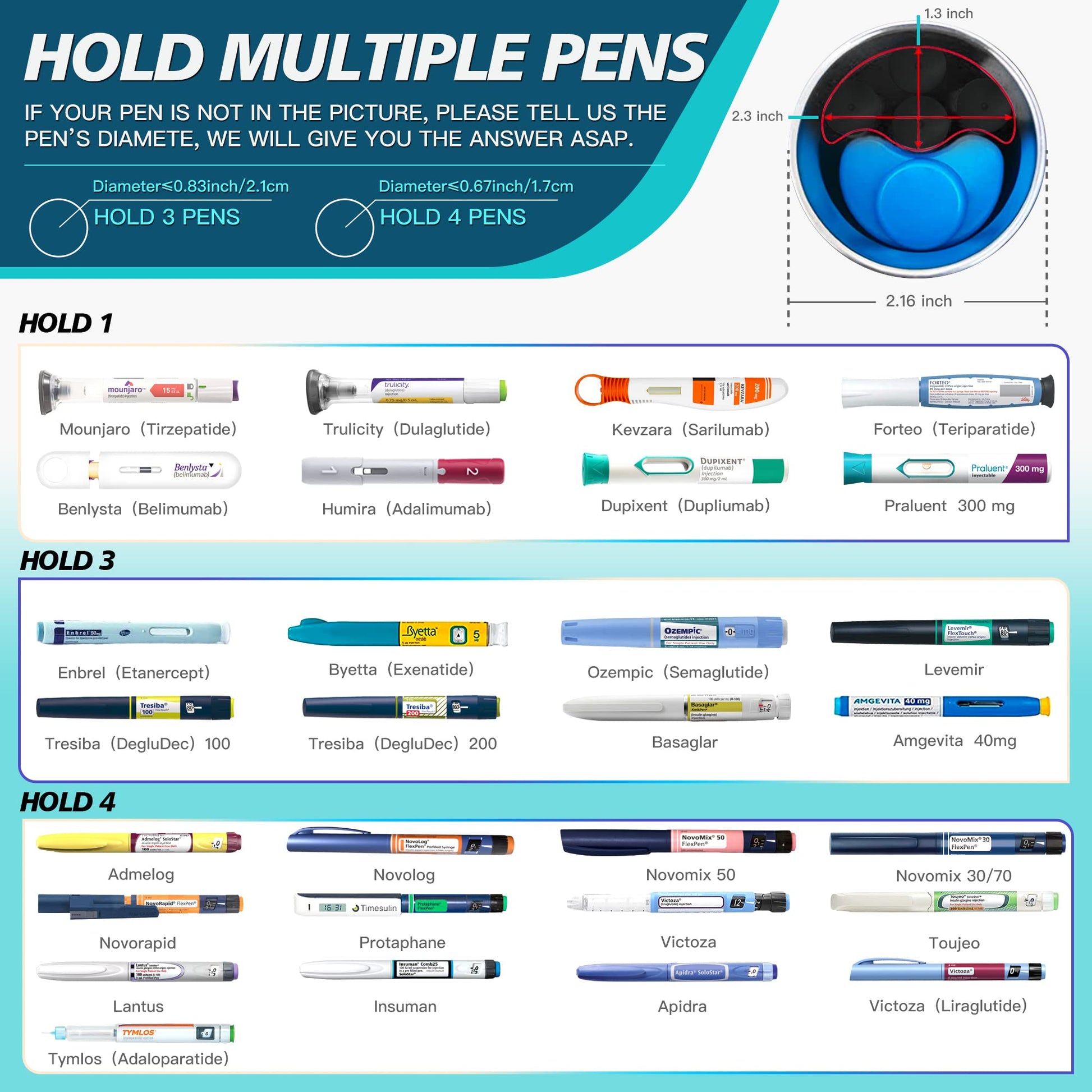 - LARGE CAPACITY: The diabetic supplies can storage 3 Insulin pen in normal size, the medication cooler for travel can also be used for other drugs that require refrigeration; Please Carefully Check The fifth image to make ensure that the medicines you use are included in the List