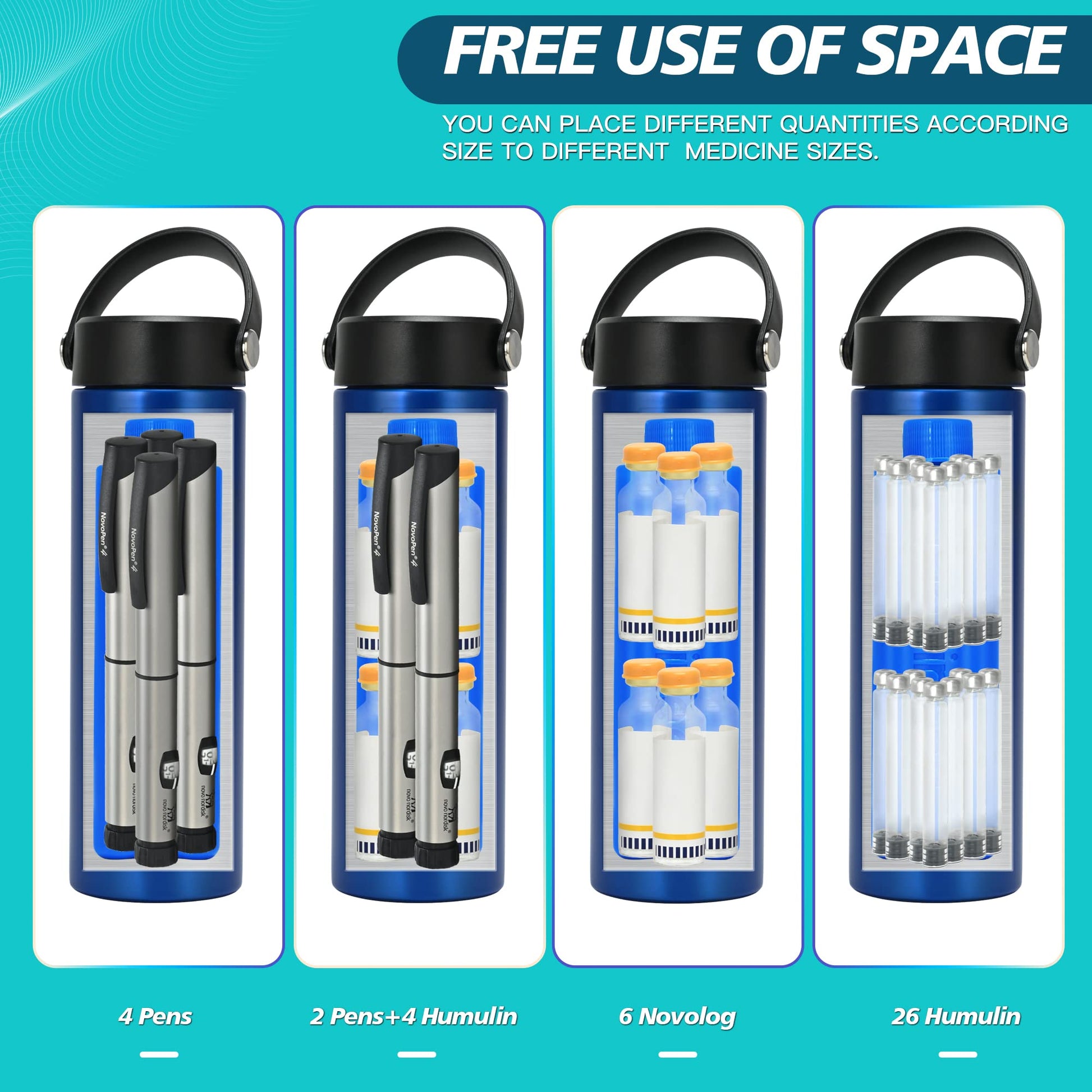 - GOOD COOLING: MEDINEED insulin cooler travel case solve the problem of refrigerating medications on the go; Biogel ice pack has great cooling capacity, even if at an ambient temperature of 105℉, ensuring that insulin would keep the temperature at 36-45℉ for 28 hours