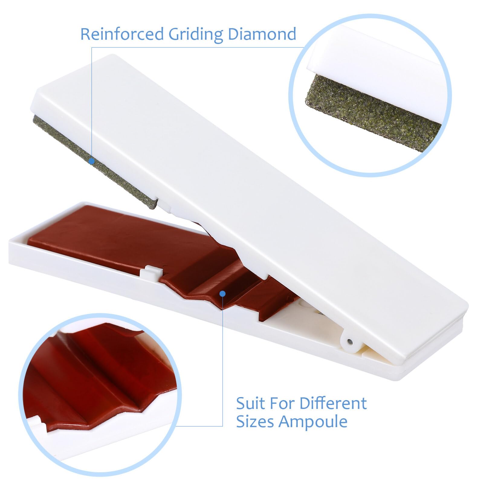 - The ampoule breaker is made of ABS and Diamond materials, which are sturdy and , feel comfortable, and save effort when opening ampoules. The lightweight design comfortably scores and breaks glass with just one hand
