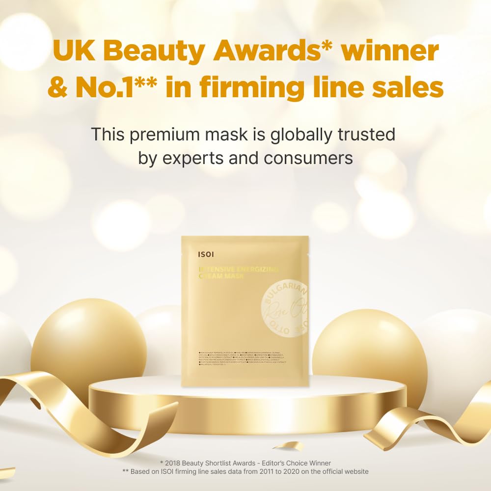 ISOI Intensive Energizing Cream Premium Sheet Mask for Skin Elasticity & Firmness, Infused with High-Moisturizing & Nourishing Firming Cream, Korean Face Mask (4EA)