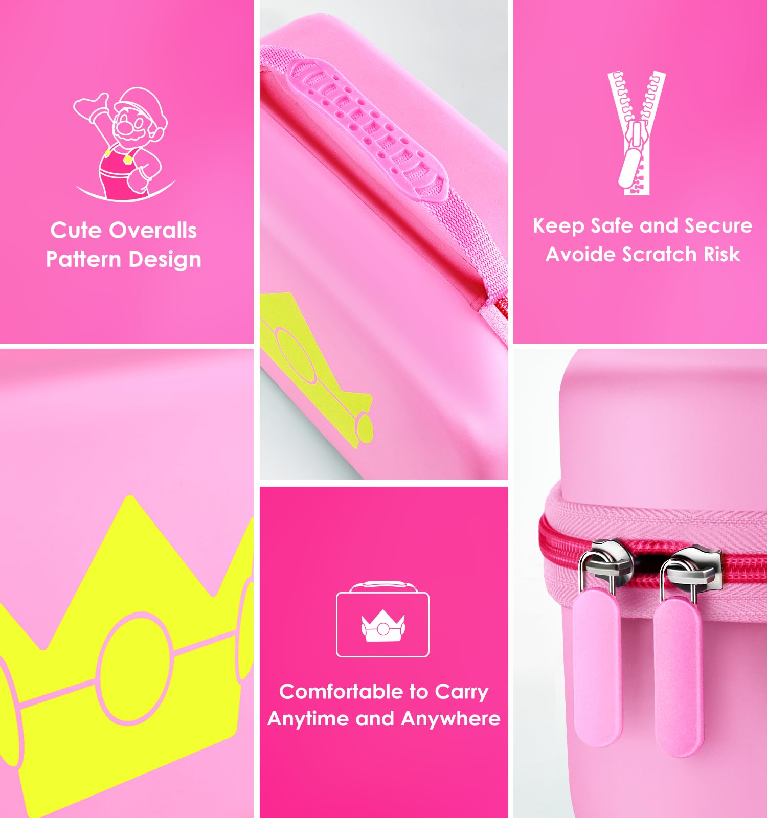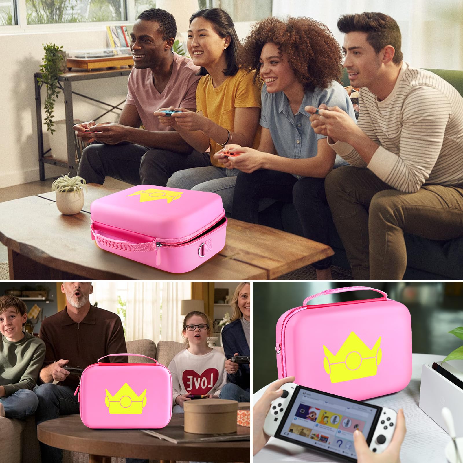 ivoler Carrying Storage Case for Nintendo Switch/Switch OLED Model,Portable Travel All Protective Hard Messenger Bag Soft Lining 18 Games for Switch Console Pro Controller & Accessories (Pink)