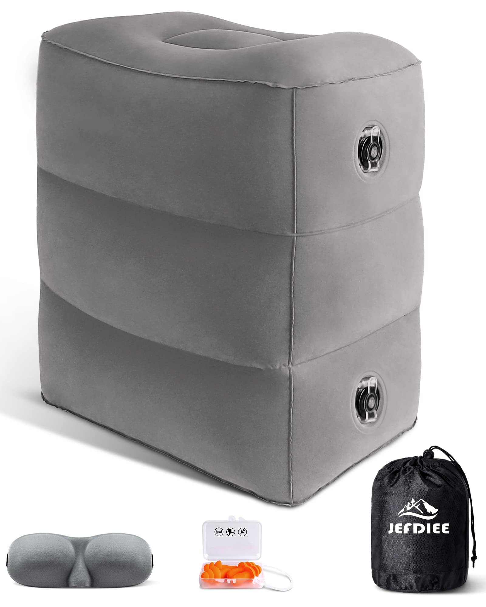 JefDiee Inflatable Foot Rest Pillow, Kids Airplane Bed, Adjustable 3 Layers Height Leg Rest Pillow, Airplane Travel Essentials Great for Office, Home, Trains, Cars
