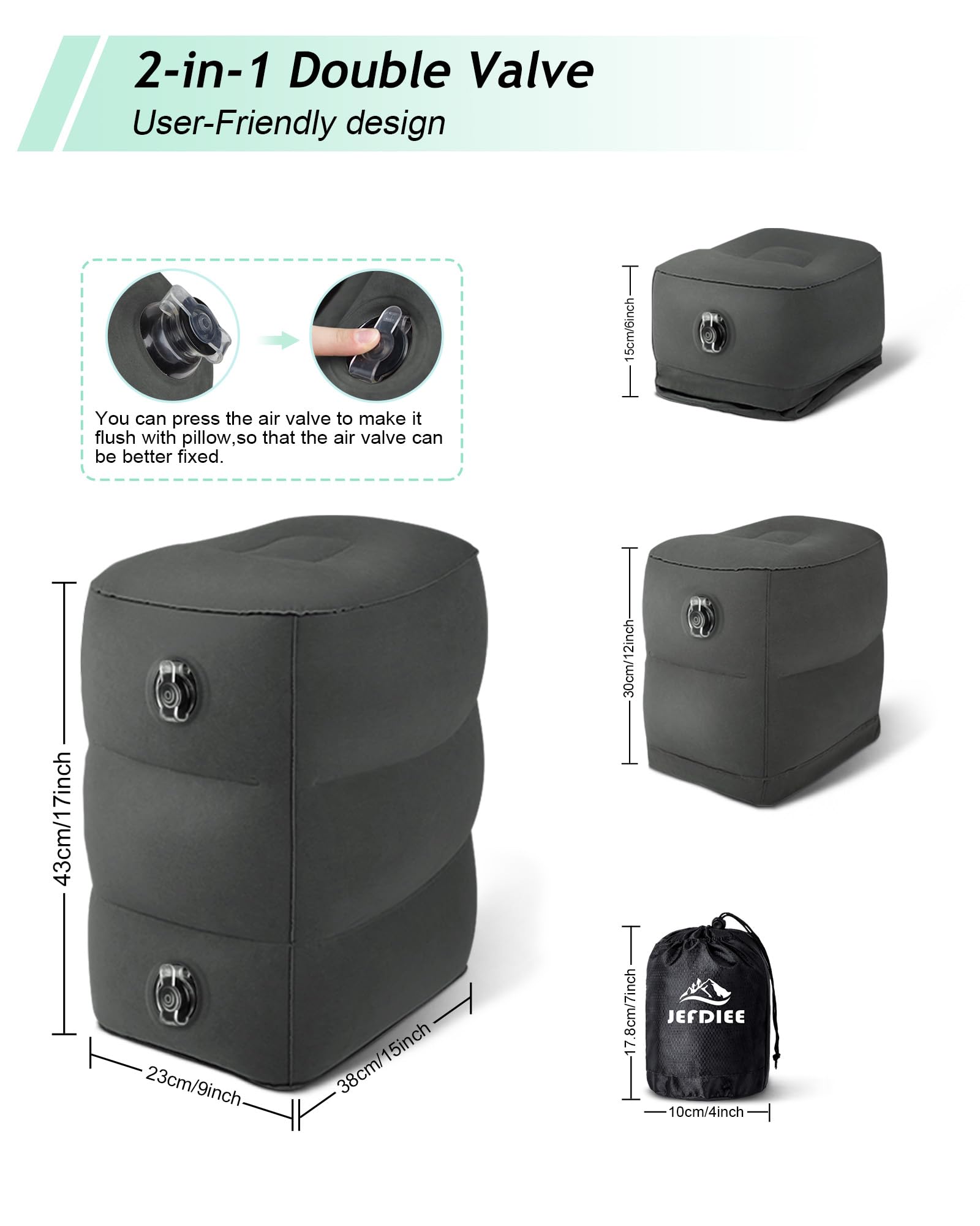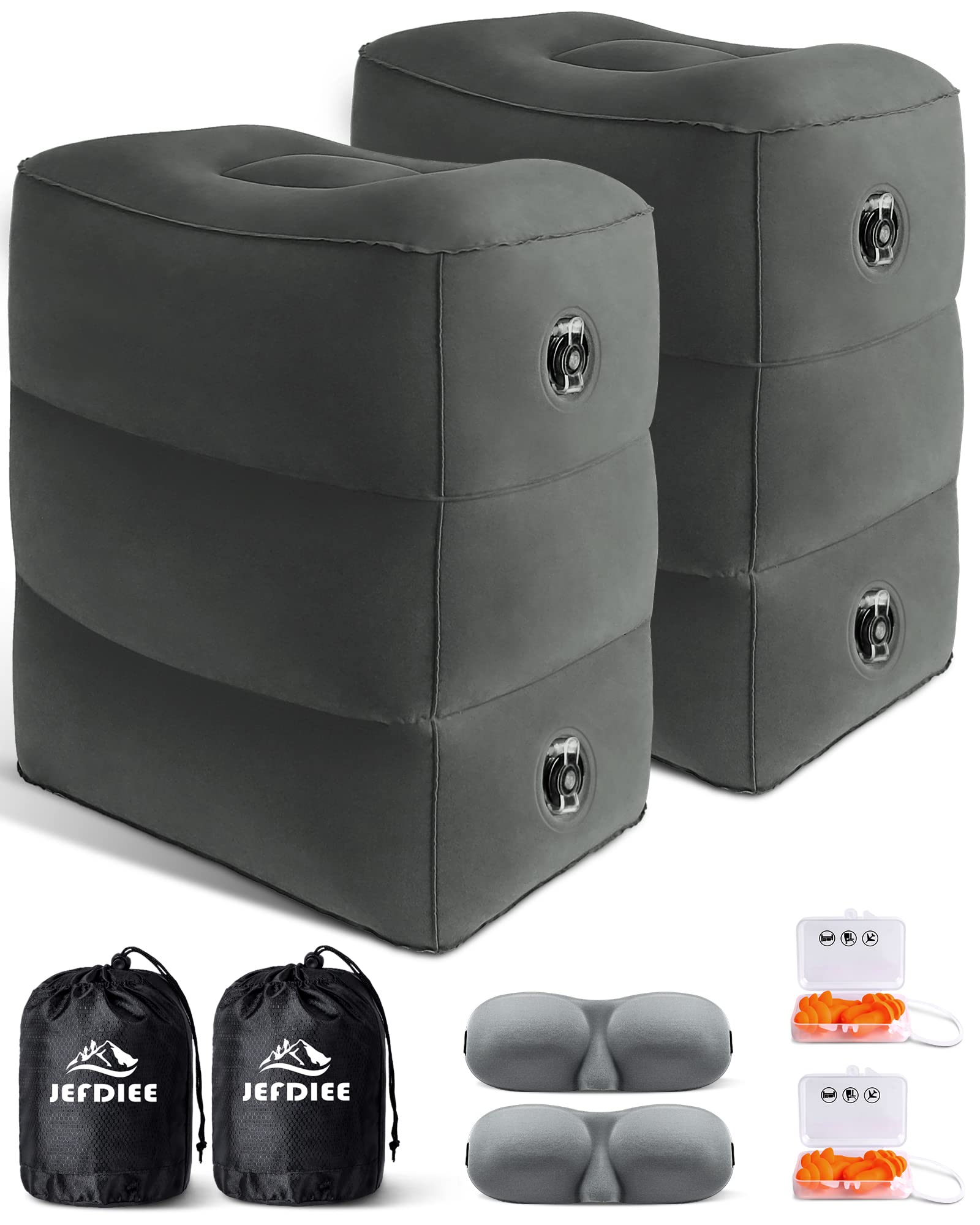 JefDiee Inflatable Travel Foot Rest Pillow, Kids Airplane Bed, Adjustable 3 Layers Height Leg Rest Pillow, Adults Travel Essentials Great for Airplane, Office, Home, Trains, Cars (2 Pack-Dark Grey)