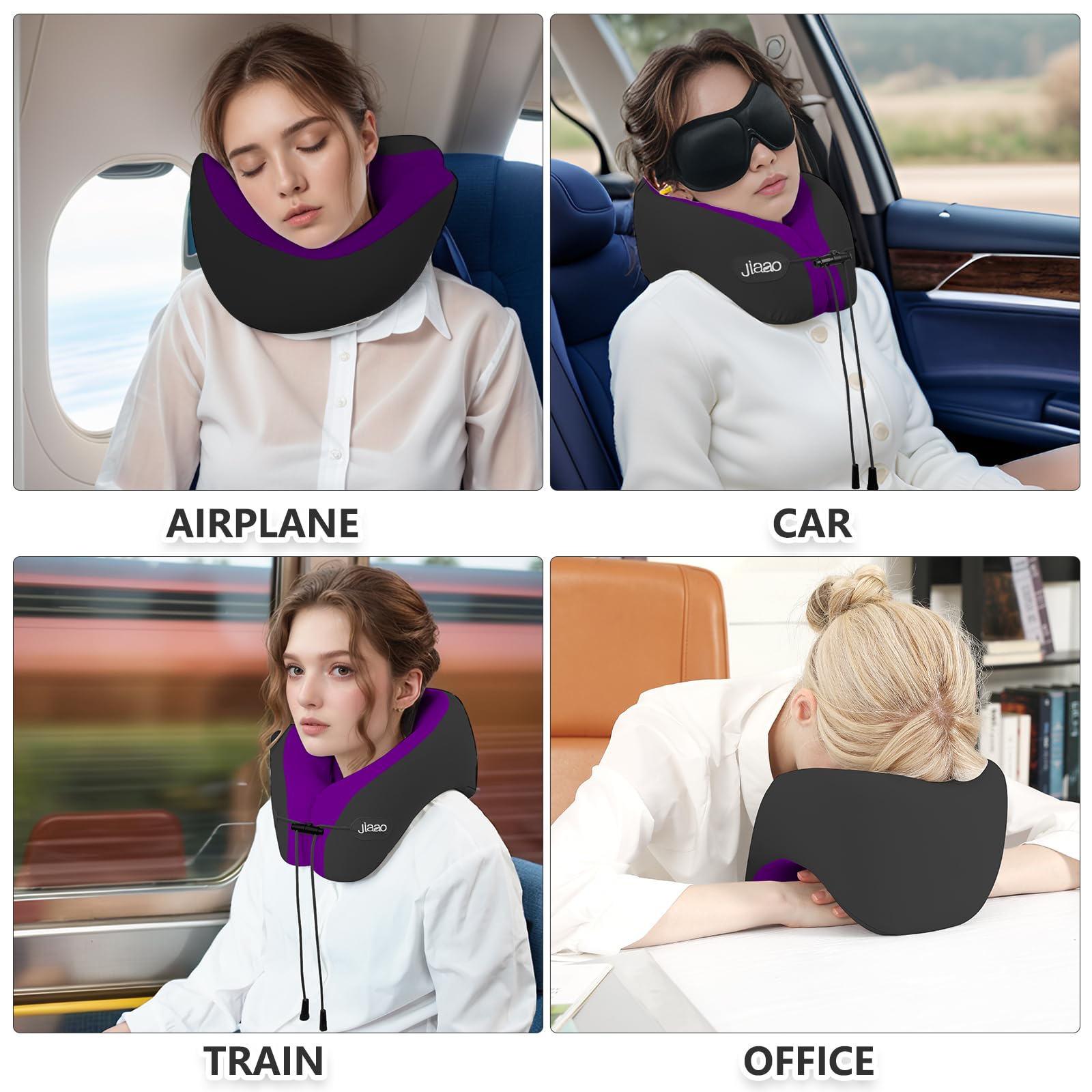 jiaao Travel Neck Pillow for Airplanes, Neck Pillow for Traveling,360º Ergonomic Memory Foam Travel Pillow, Soft and Breathable Cover,Portable Pillows for Car, Train or Airport Travel Essentials