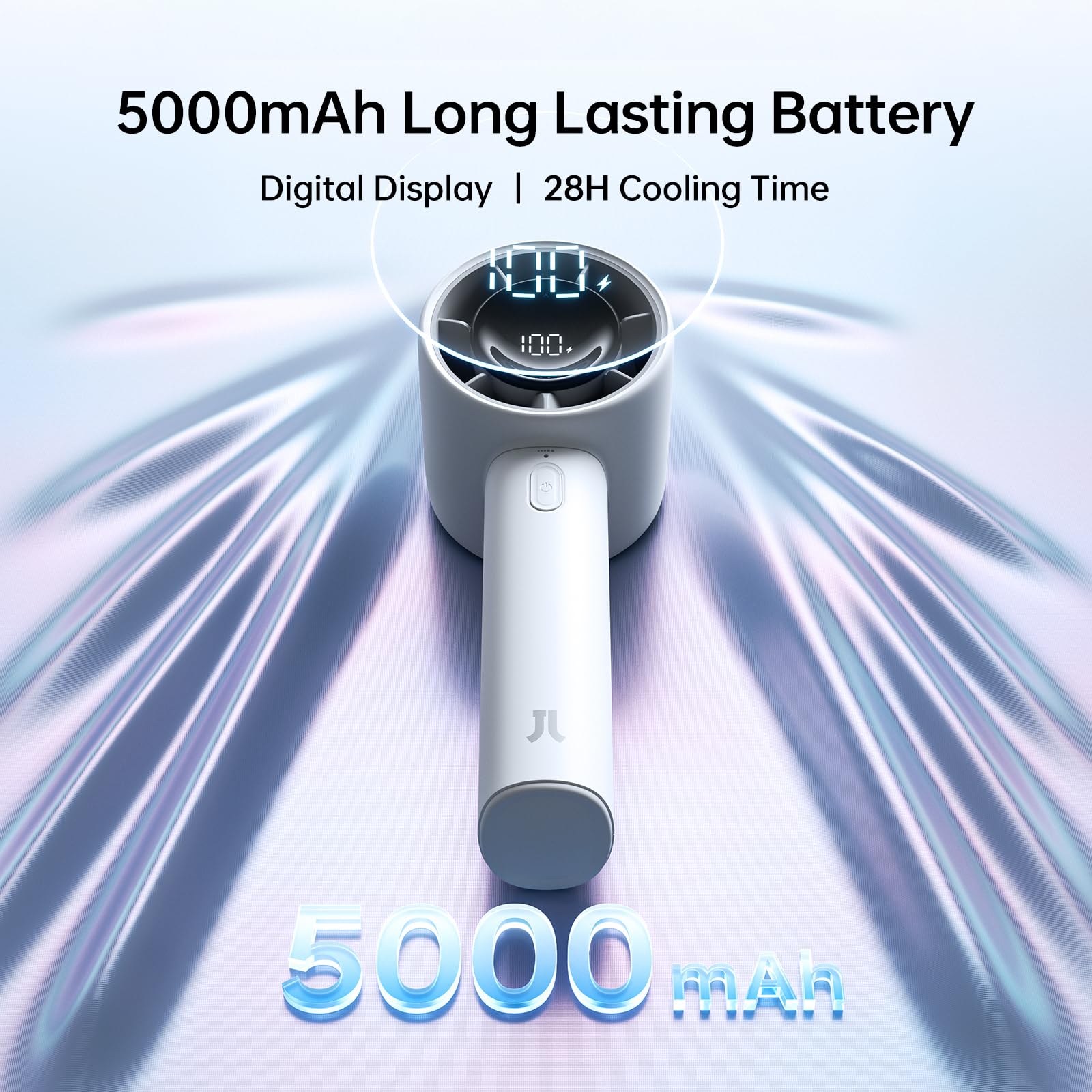JISULIFE Handheld Turbo Fan, 5000mAh Rechargeable Portable Fans,Up to 28 Hours Working,5 Speed Strong Wind,Personal Mini Fan for Travel Outdoor Camping Beach Makeup(Gray)