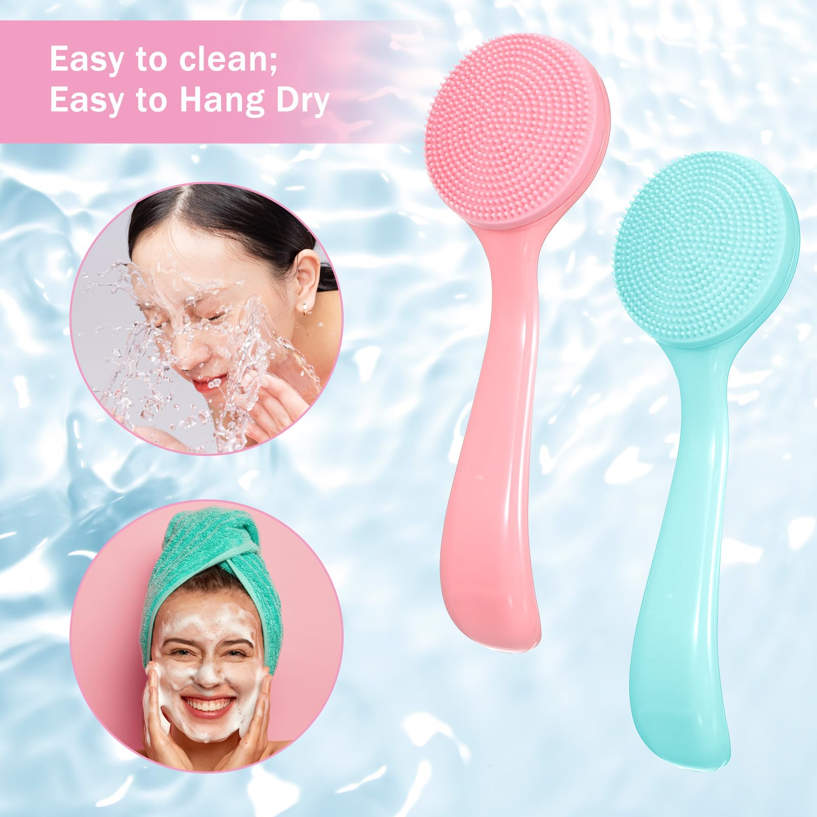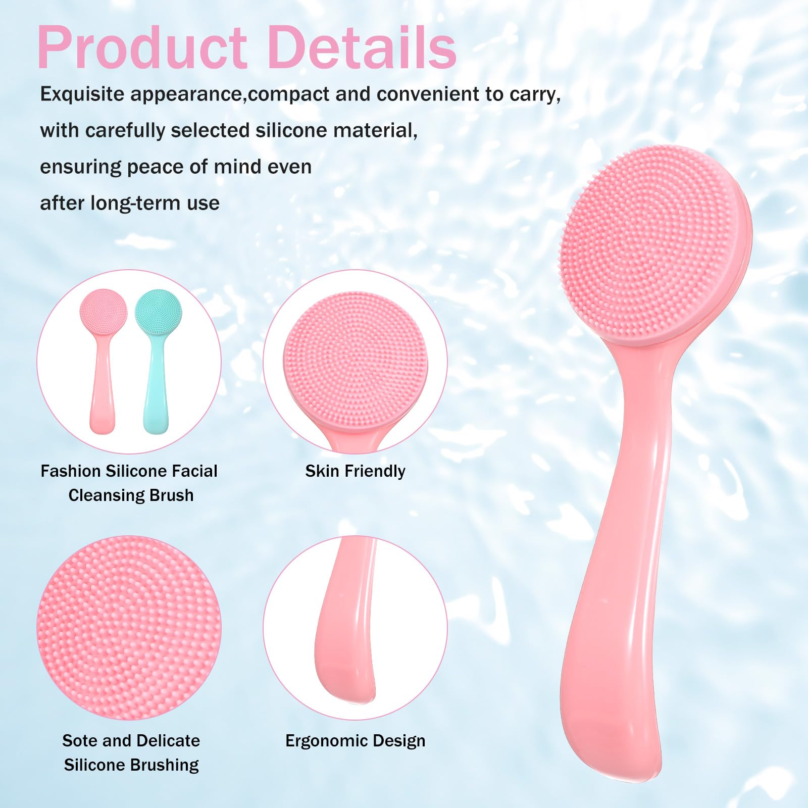 JJUNW 4 Pack Silicone Manual Facial Cleansing Brush, Skin Friendly Waterproof Face Cleaning Scrubber Exfoliator Brush for Blackheads Whiteheads Makeup Residues Removal (Blue, Pink)