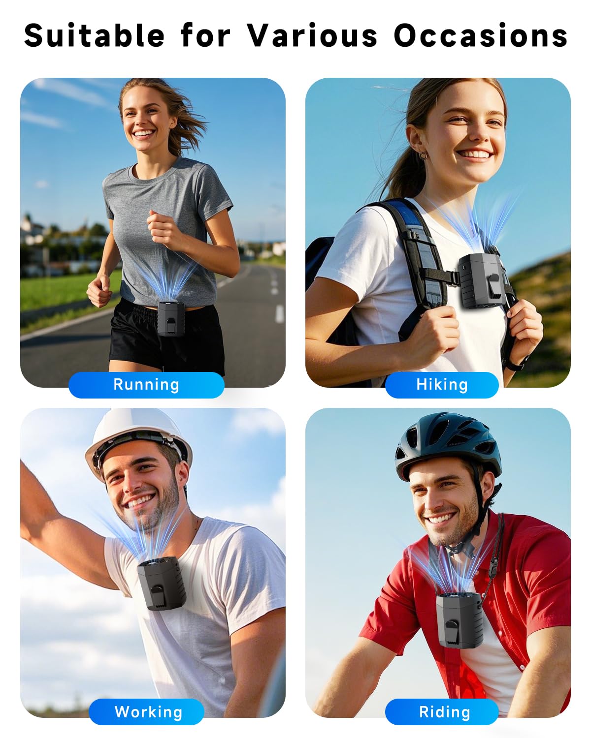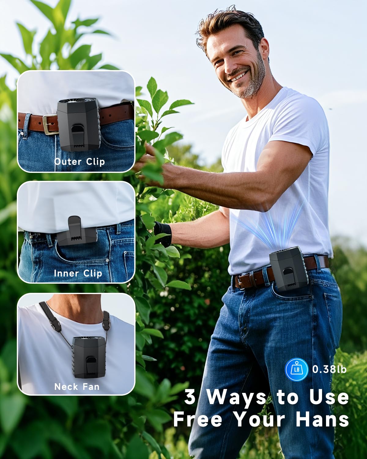 - 【Hands-Free 4-in-1 Cooling Solution】 Stay cool anywhere with this versatile 4-in-1 personal fan! It works as a waist fan, neck fan (with the included lanyard), desk fan, and handheld fan—all in one compact design.Designed for extreme heat, this wearable fan provides powerful, hands-free cooling whether you're indoors or outdoors.