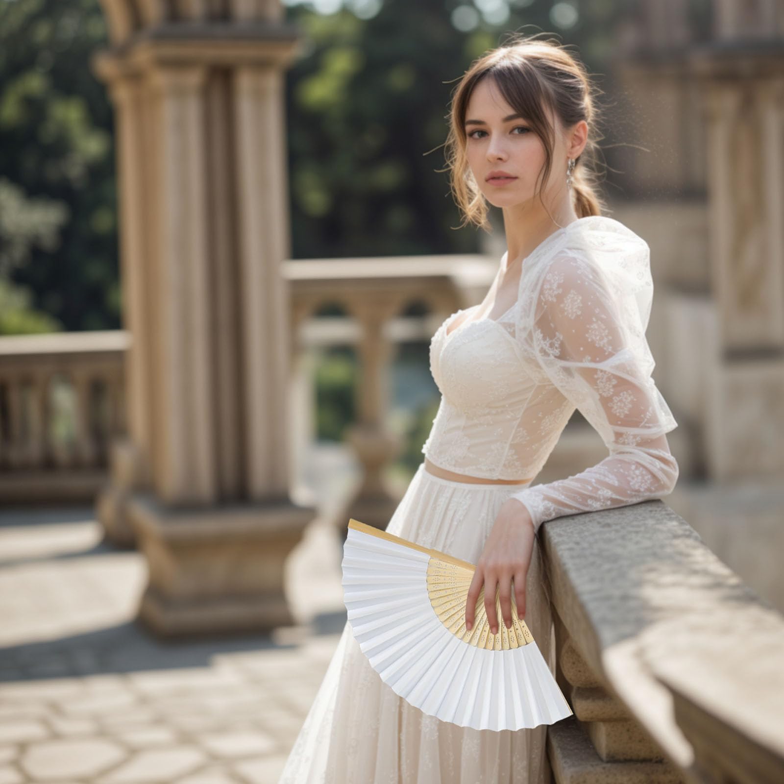 - What You Will Get - 12PCS White Paper Folding Fans (each is about 8.3inches long, exquisite hollow-out patterns on the fnas handle, full of exotic accent)