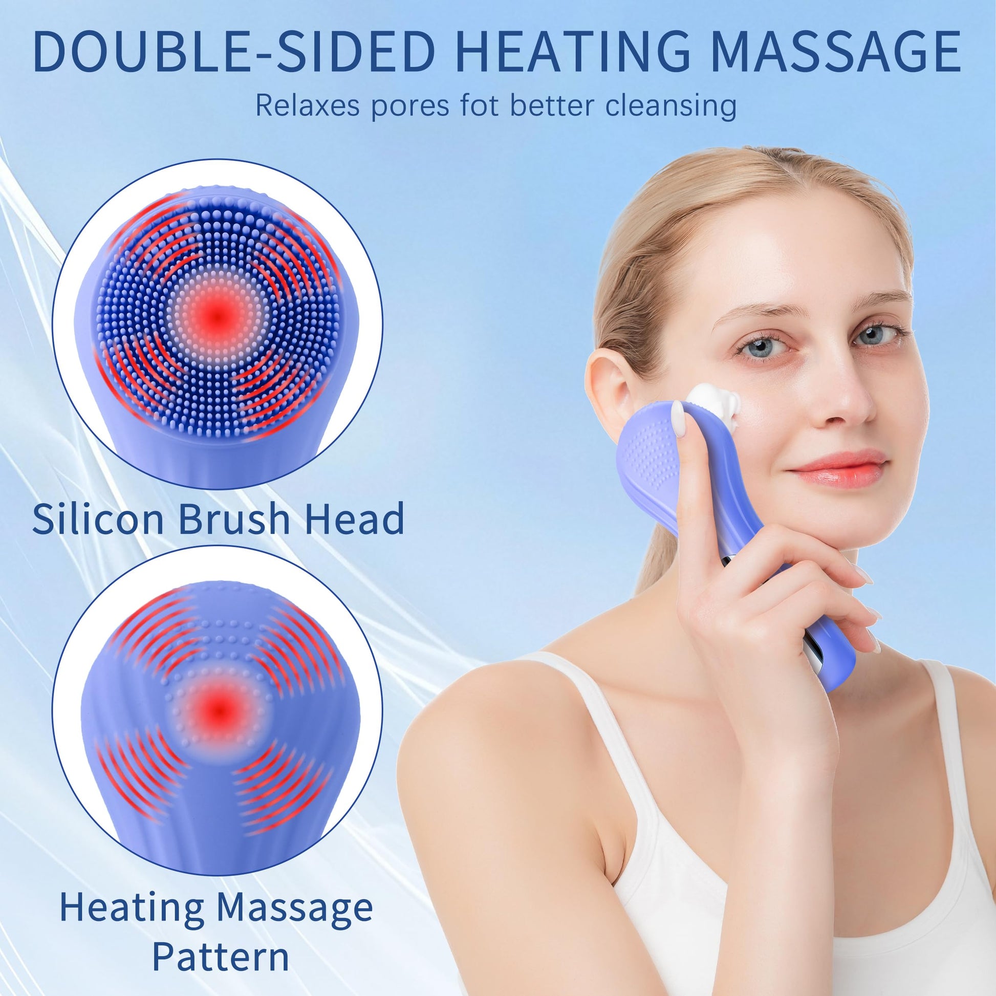 - Massage Benefits:Reverse wavy side massages creams/serums for better absorption. 90 - sec massage firms skin, boosts blood flow.