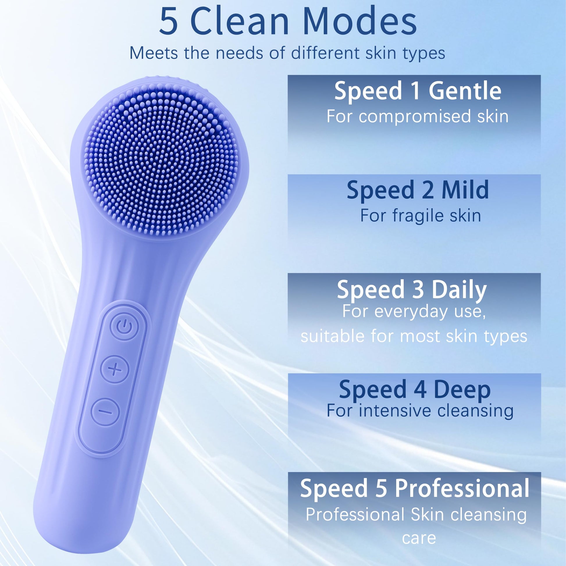 - Gentle Cleansing:Ultra - soft silicone head suits all skin types, removing 99% dirt, oil, and dead skin.