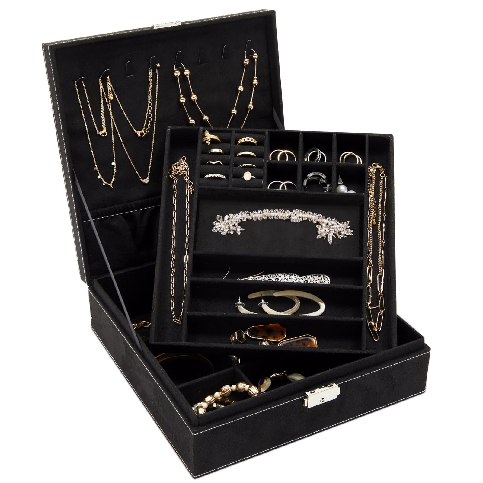 - Versatile Storage Appeal: With a two-layer design, this black jewelry box for girls and women features a removable drawer and multiple compartments. It functions as both a jewelry organizer box and a decorative box, perfect for home or travel use