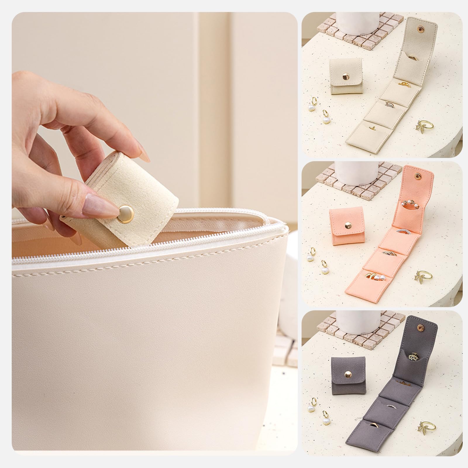 Jwtolp Mini Travel Jewelry Bag, Mini Travel Jewelry Roll Bag with Buckle, Portable Foldable Multifunctional Travel Jewelry Organizer Case, Small Jewelry Box for Earrings, Rings, Necklaces