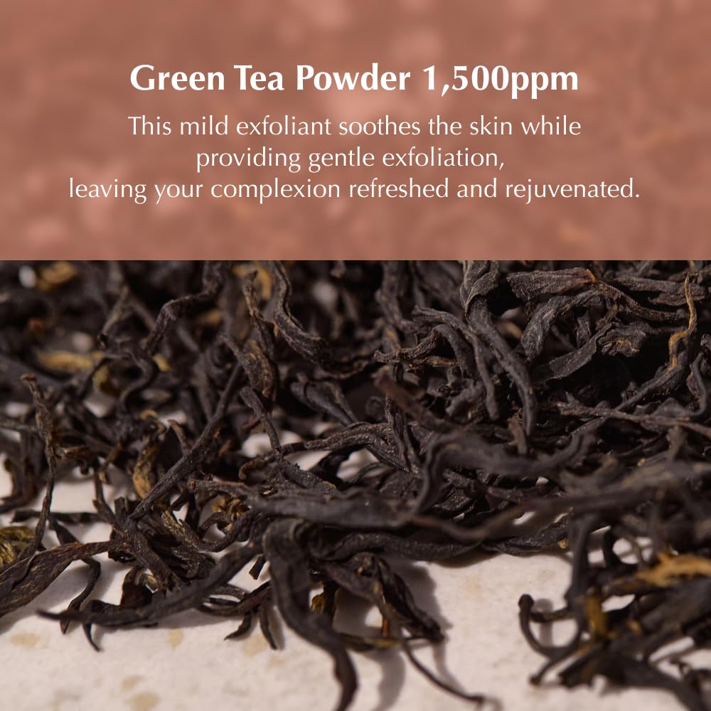 - Moisture Balance: 1,500 ppm of green tea to provide fresh moisture and soothing dehydrated skin, maintaining a healthy moisture balance.
