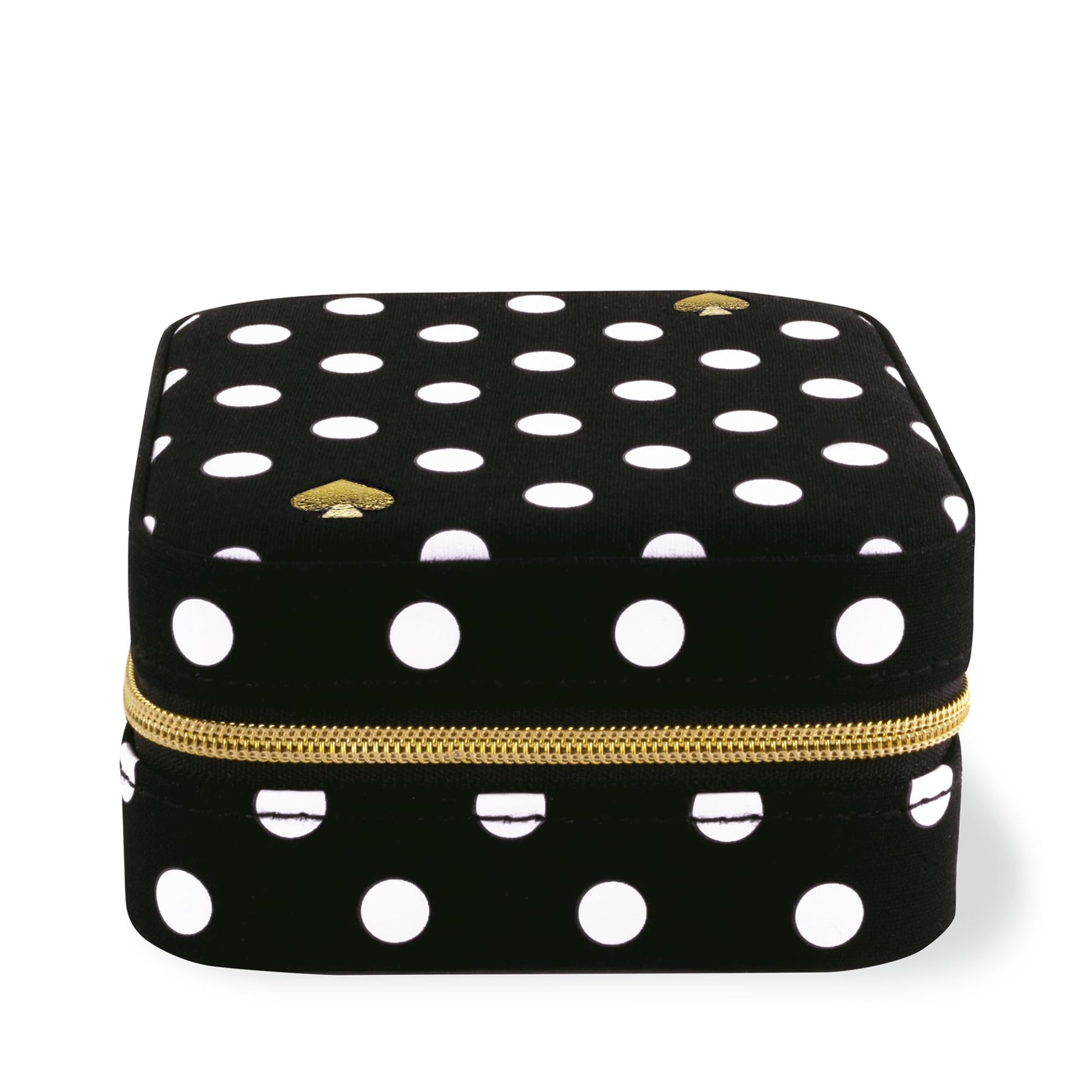 - Earring/necklace box is featured in the pretty print, Polka Dot, and features the kate spade new york logo printed on the base. The soft, flocked black interior lining is safe and easy on your jewelry so your personal style stays on-point, no matter where you're headed!