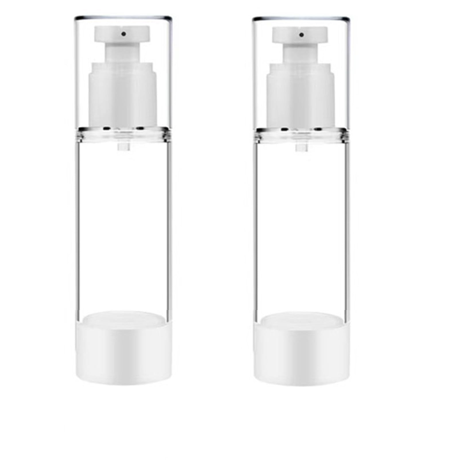 KEAIYYJ- 1 oz Travel Pump Bottle for Toiletries Airless Face Wash Container Small Mini Size Empty Refillable Dispensers 30ml 2 Pack