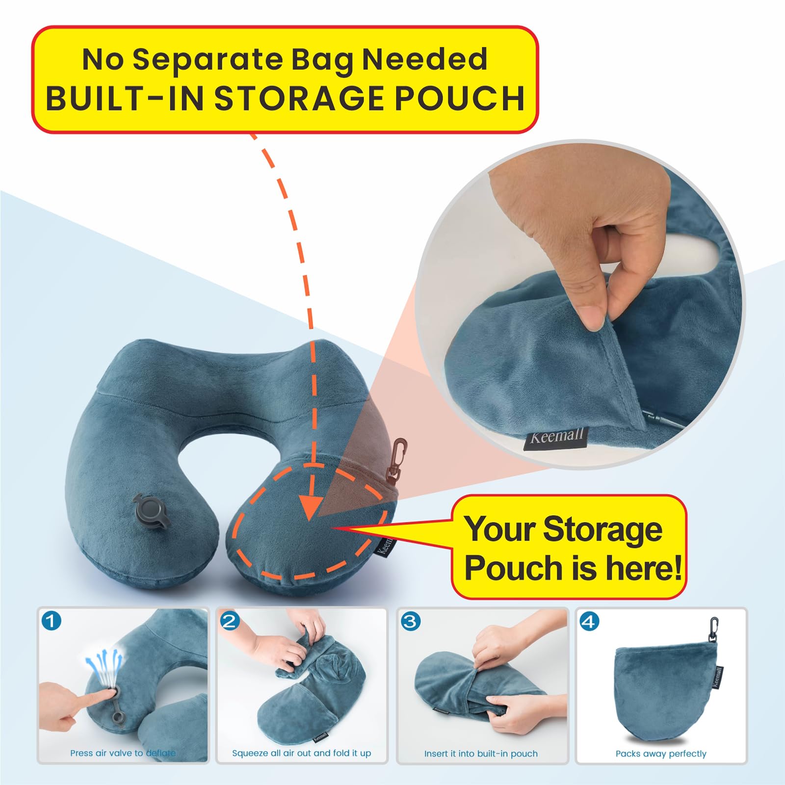 Keemall Inflatable Travel Neck Pillow for Airplane Sleeping Blow Up Neck Support Air Pillow Traveling on Plane Long Flights Washable