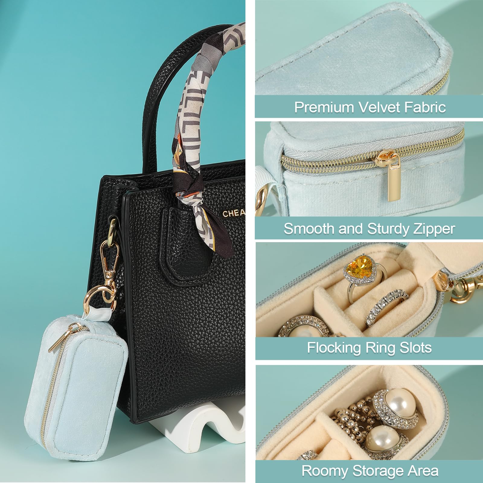 - 1. Premium Velvet Protection & Stylish Design - Small Jewelry box is crafted from soft velvet. This jewelry case shields rings, earrings, and necklaces from scratches, tangles, and moisture. The elegant keychain design with a chic metal clasp adds a fashionable touch to your travel essentials.
