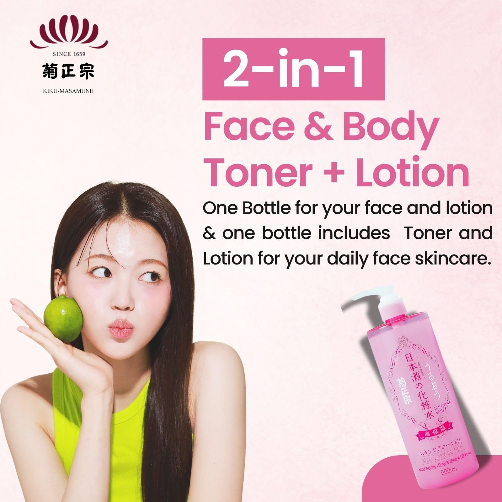Kikumasamune 2-in-1 Face Toner + Full Body Lotion for Women, Natural Body Lotion for Dry Skin with Rice Extract, Amino Acids, Ceramides& Protein, Japanese Skin Care Lotion, HIGH MOIST, 16.9 Fl Oz