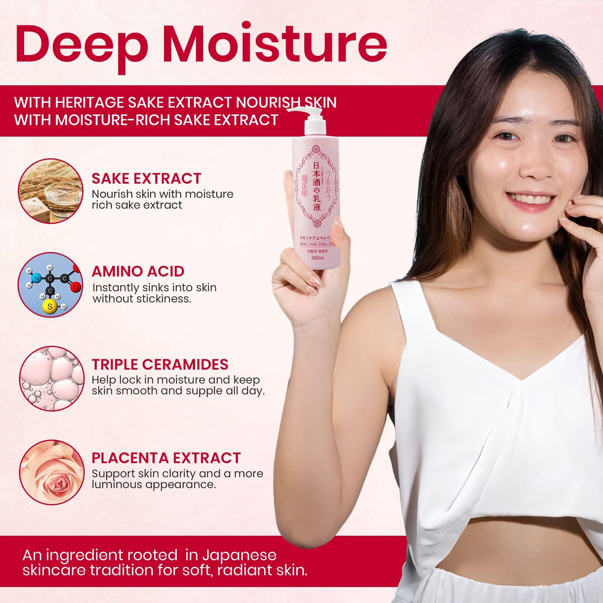 - 【Unique Sake-Based Moisture Skin Boost】 Infused with Japanese sake extract, this moisturizing body lotion provides lasting hydration and supports a healthy-looking complexion. A great option for those seeking a natural body lotion with a refreshing finish.