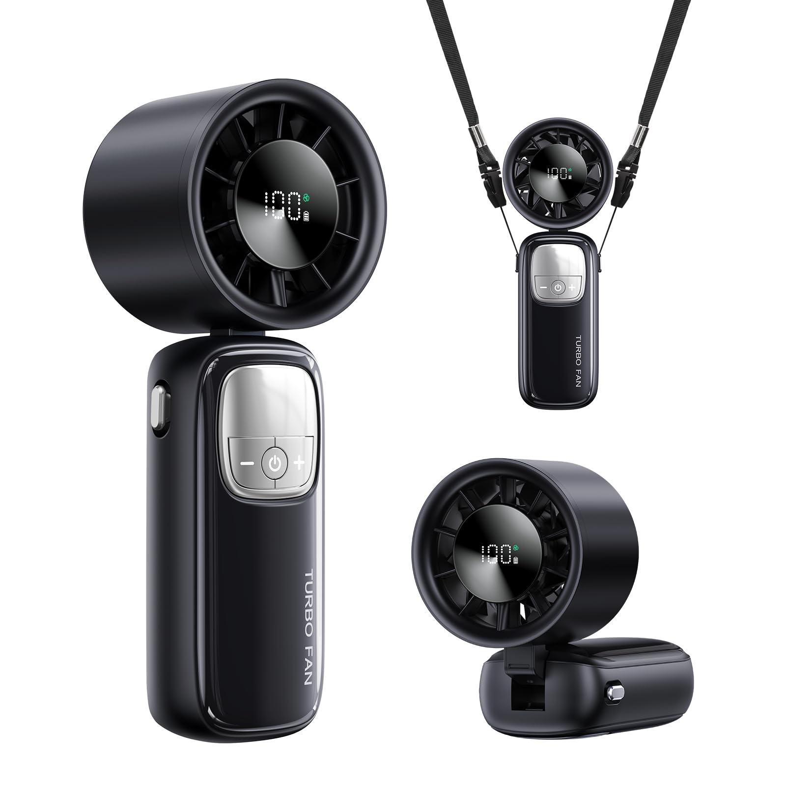 KIMMOO 3-in-1 Portable Handheld Turbo Fan-100 Speeds, 15000 RPM, 10Hrs Cooling, LED Display, 90° Rotation, USB Rechargeable Battery Powered, Mini Foldable Hand Held Personal Fan for Women Men (Black)