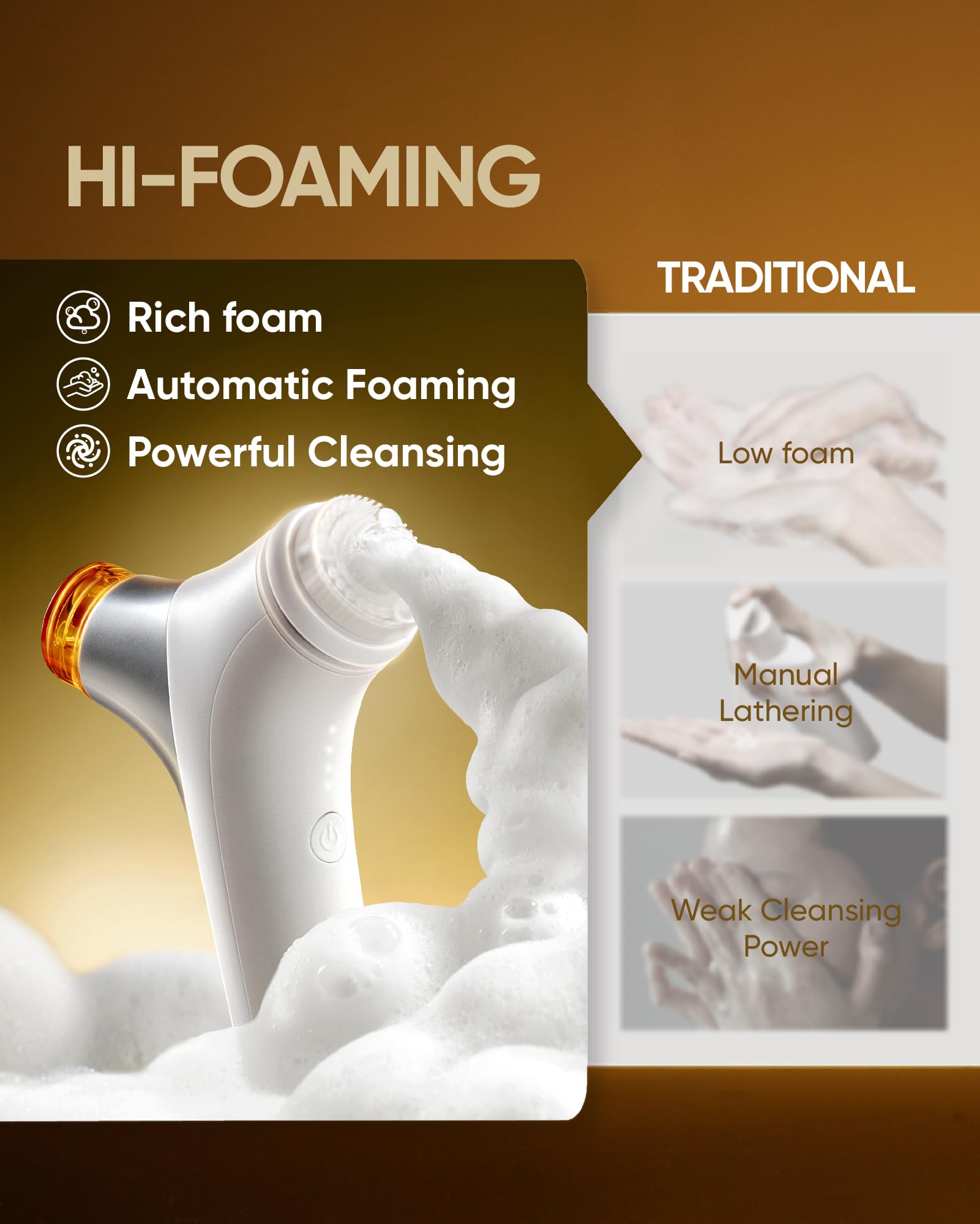 - Smart Foam Technology – One-touch foaming with adjustable foam control. Enjoy a rich, even lather that reduces skin friction while dual-direction rotation of exfoliating face scrubber supports a deep and thorough cleanse