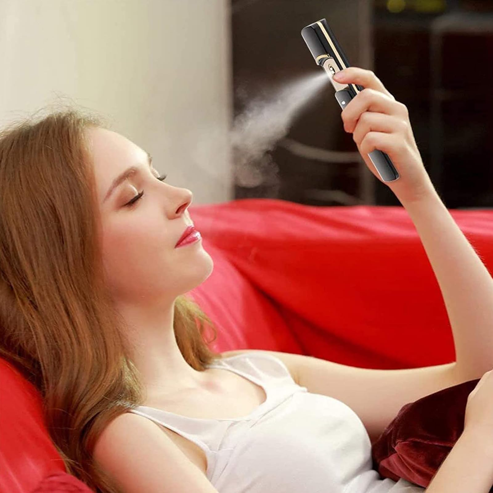 - 【Fine and Strong Mist】Our Nano Mister adopts a high-tech atomization chip and special high-speed oscillation processes turning the particle into 0.3-0.5 nm molecule sizes which penetrates deep into the skin quickly.Nano meter tiny fog particles but huge,used quality materials No irritation.Choose the appropriate distance, the effect is better. Not leaking.