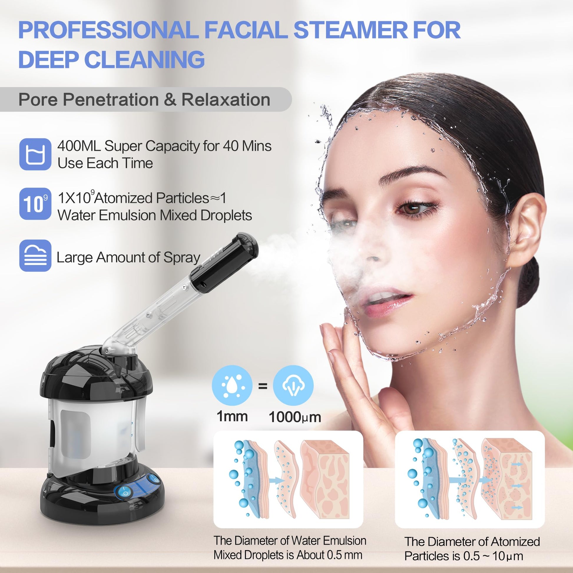 - Safety and Guarantee: The professional facial steamer will turn off automatically when water is lower than probe and alarm until you press OFF button to unplug the device. Note: Any moisture found inside the product packaging is from factory quality testing and won't affect normal use