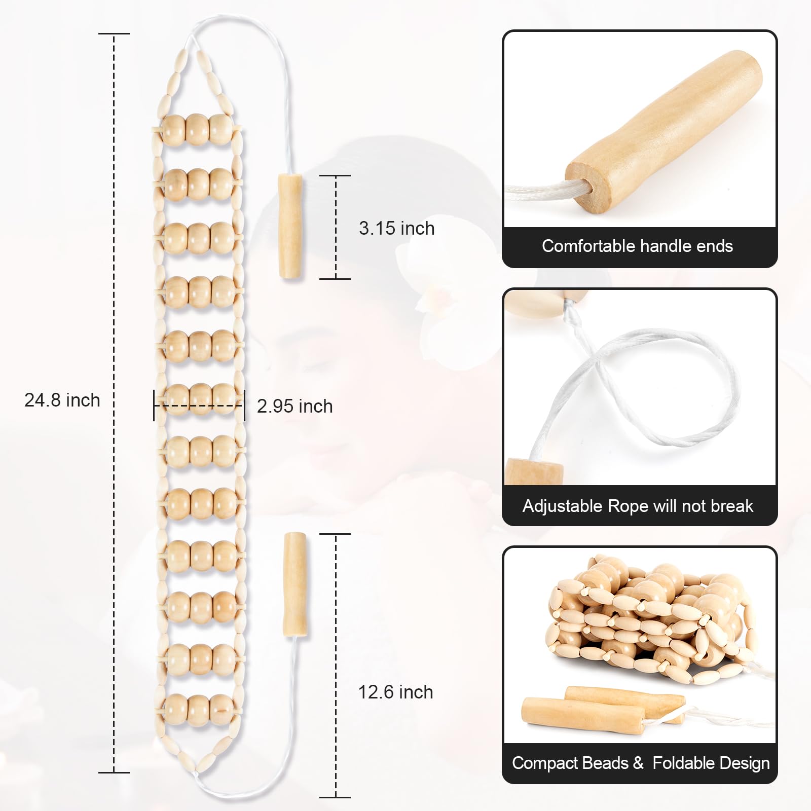 - 【Ergonomic Roller Design】 Featuring 12 sets of rollers and 36pcs large wooden beads ensures comprehensive body coverage.It features a non-slip handle, making it easy to grip and effectively relief from pain and tension in the back,shoulders, waist, arms, legs, neck, feet, and more.