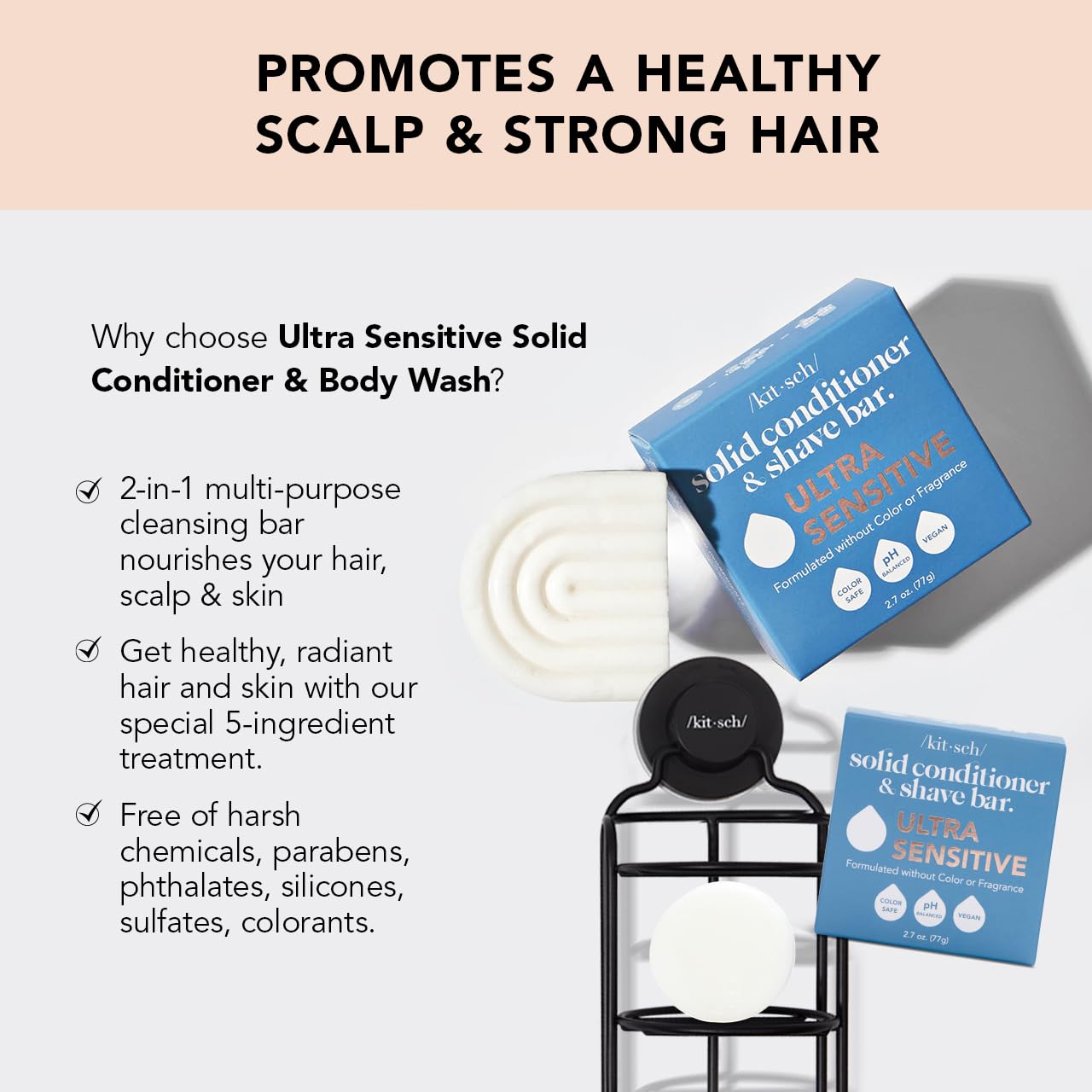 Kitsch 2-in-1 Ultra Sensitive Conditioner Bar & Shaving Soap for Sensitive Scalp & Skin – Moisturizing & Anti-Irritation Bar Soap - Scent Free, 5 Ingredients Only - Made in USA - 2.7oz