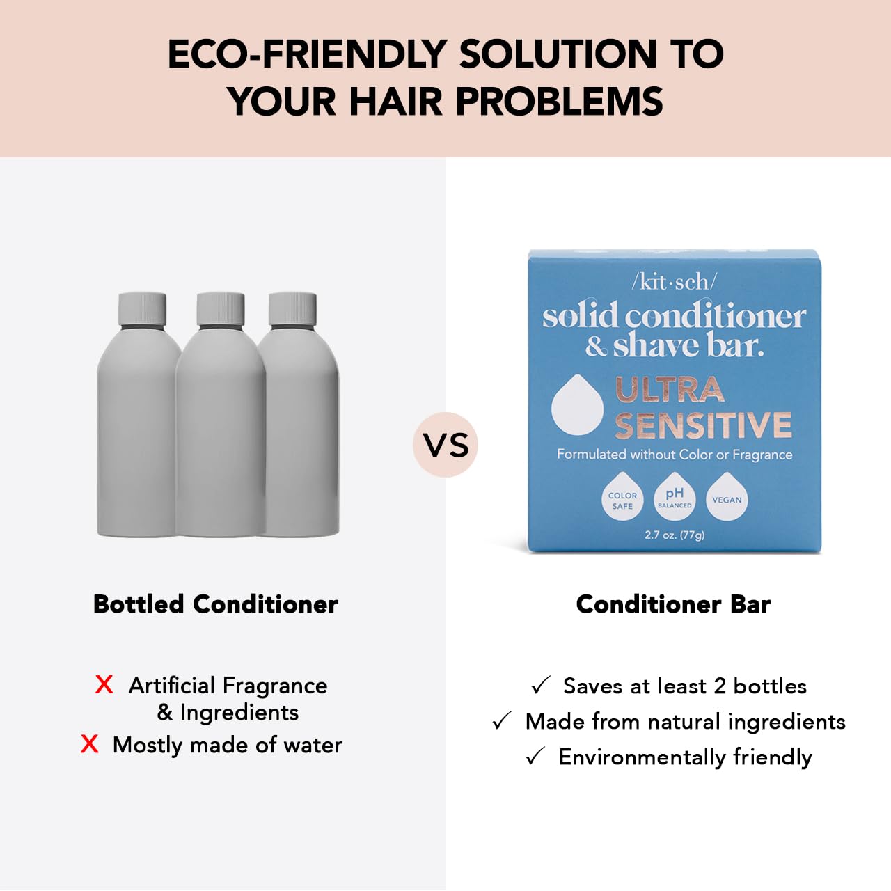 - SAVE TIME & SPACE WITH YOUR 2-IN-1 SOAP BAR: Kitsch brings you an ultra-sensitive, fragrance-free conditioner bar and shave bar for women. Cleanse your hair and shave on the go with just one convenient bar. Perfect for travel—no liquids, no hassle in carry-on luggage.